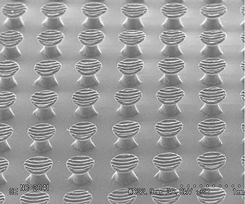●フィルムの表面にマッシュルーム状の微細なフック構造を成形し、ファスナー効果を生みます。