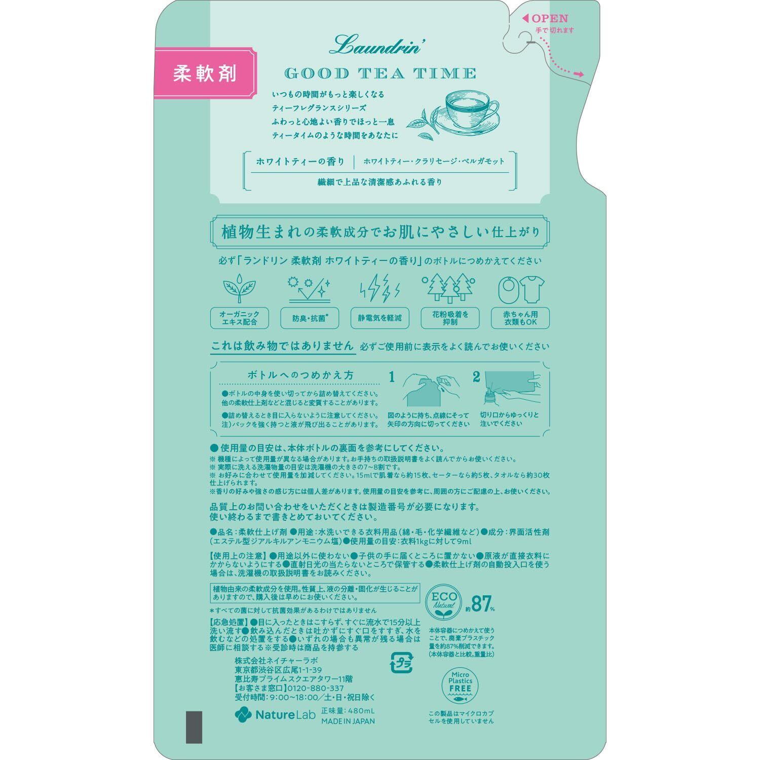 ランドリン 柔軟剤 ホワイトティーの香り 詰め替え 480ml