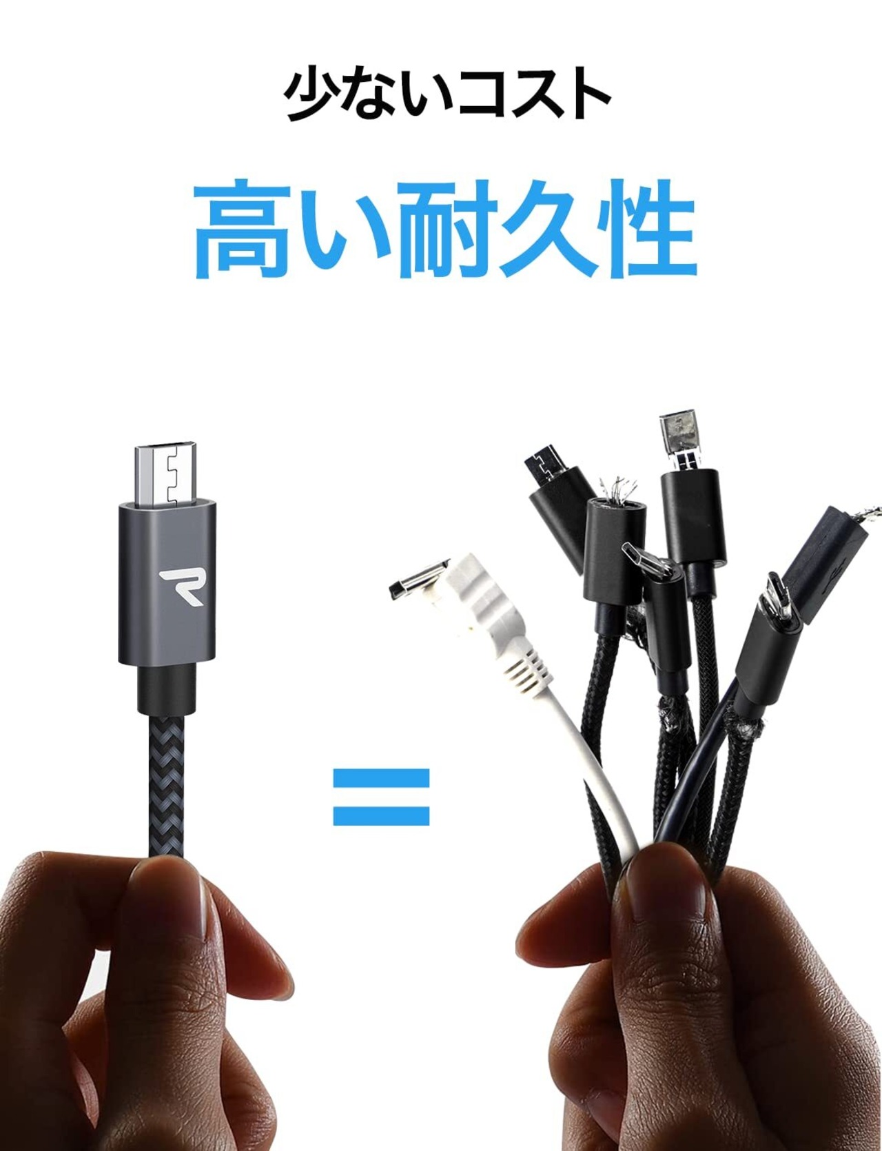 【長持ちで頑丈なケーブル】20,000回以上の曲げ試験と10,000回以上の指抜き試験にに合格しており、耐久性にとても優れております。少々雑な扱いにも耐えられるきっしりしたusbケーブルです。