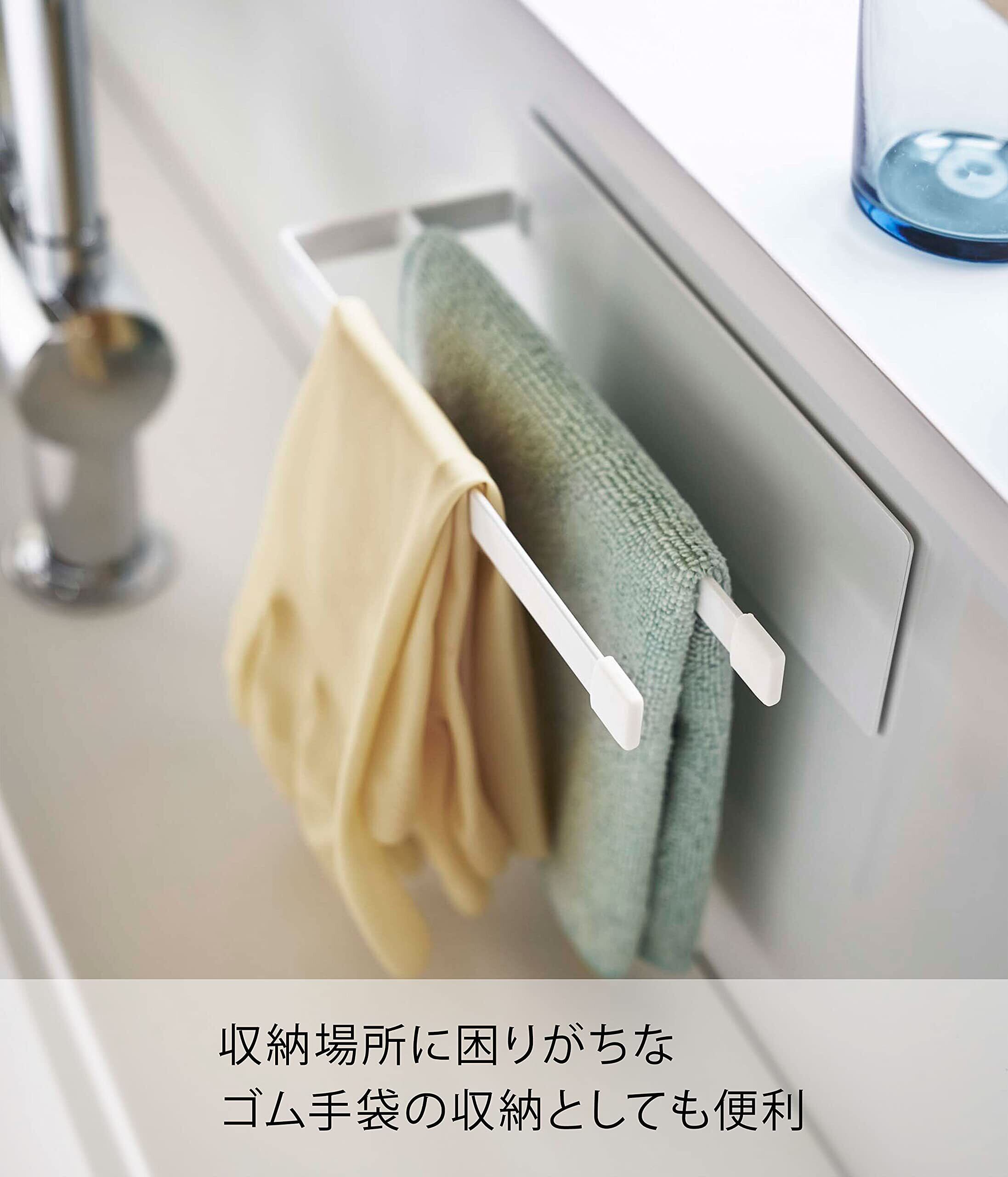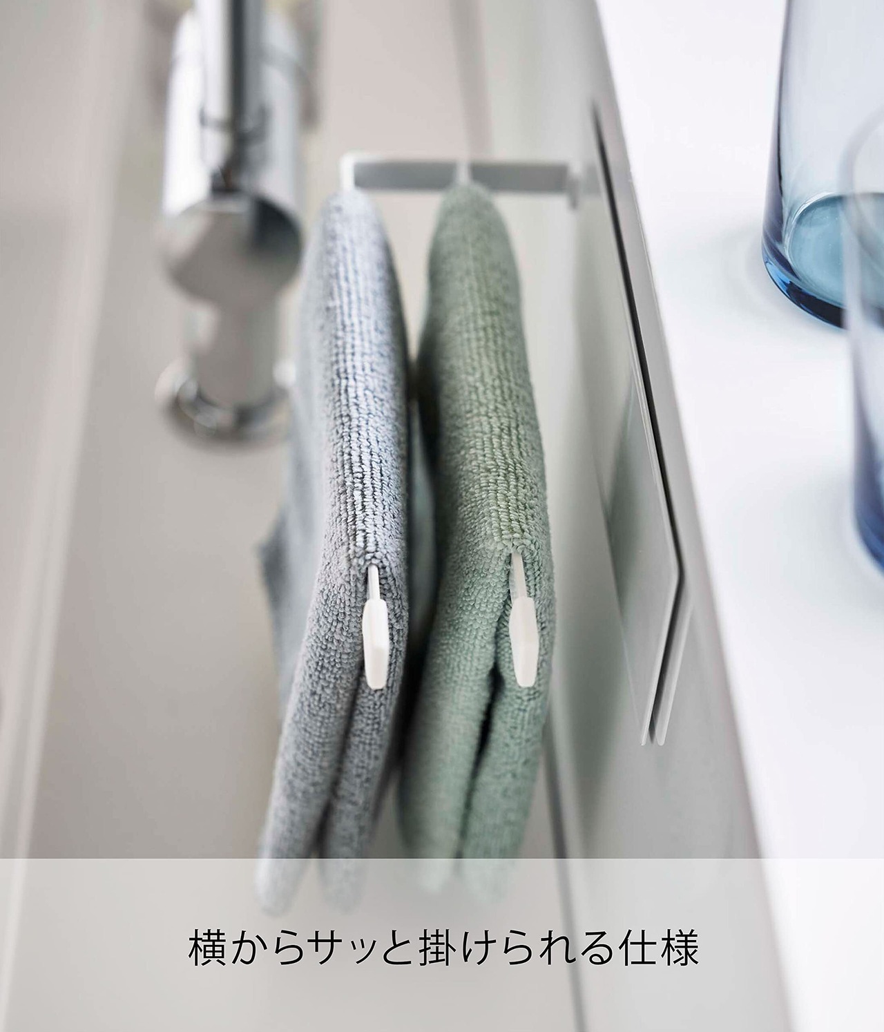 マグネットが付くスチール壁面に簡単取り付けの布巾ハンガー。