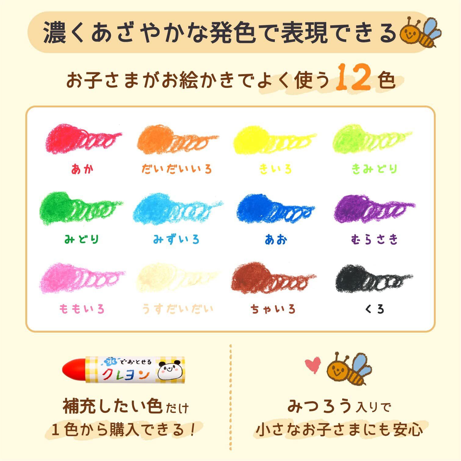 サクラクレパス 水でおとせるクレヨン 12色 WYL12
