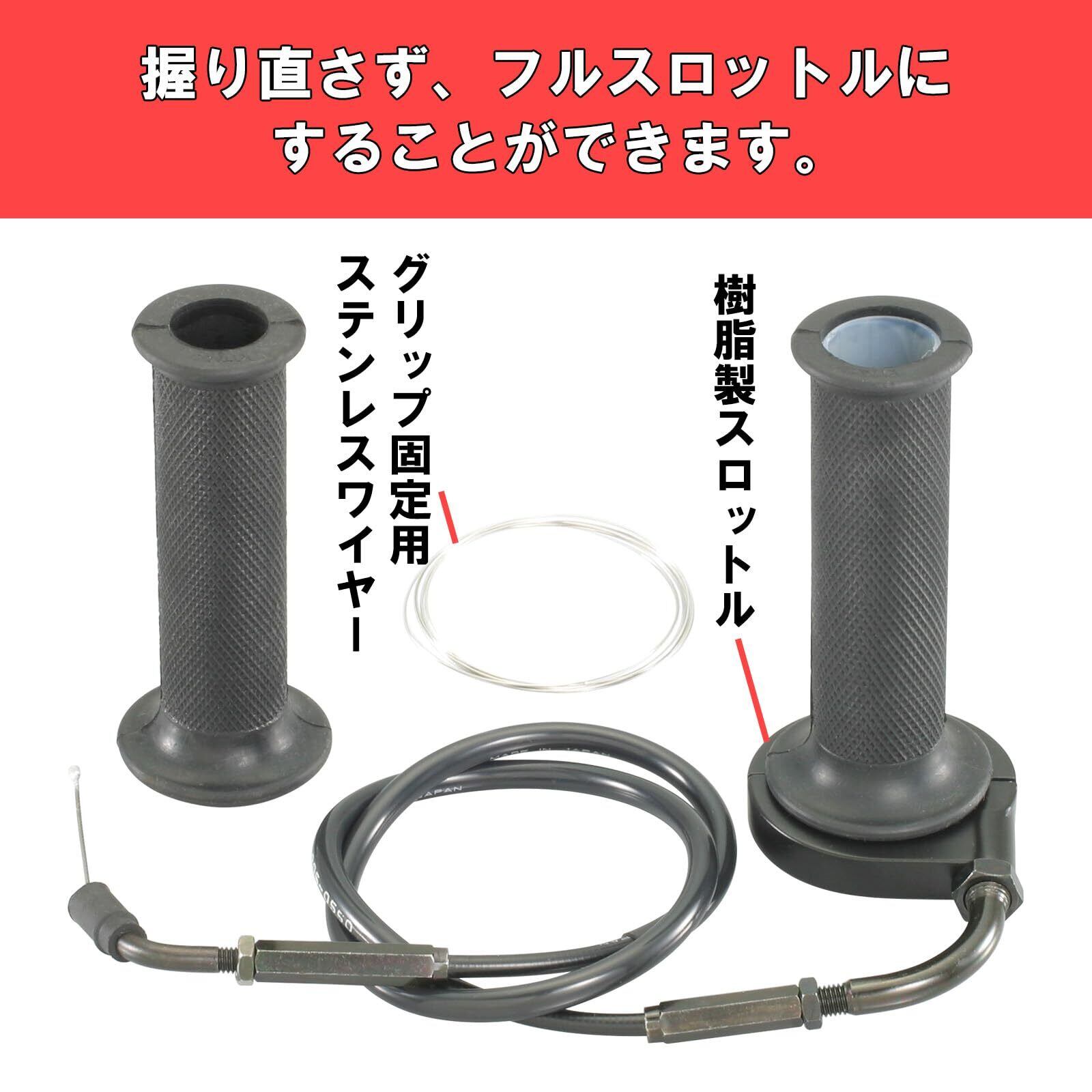 ノーマルスロットルよりもスピーディーに、握り直しでもたつくことなくフルスロットルすることが出来るハイスロットルSETです