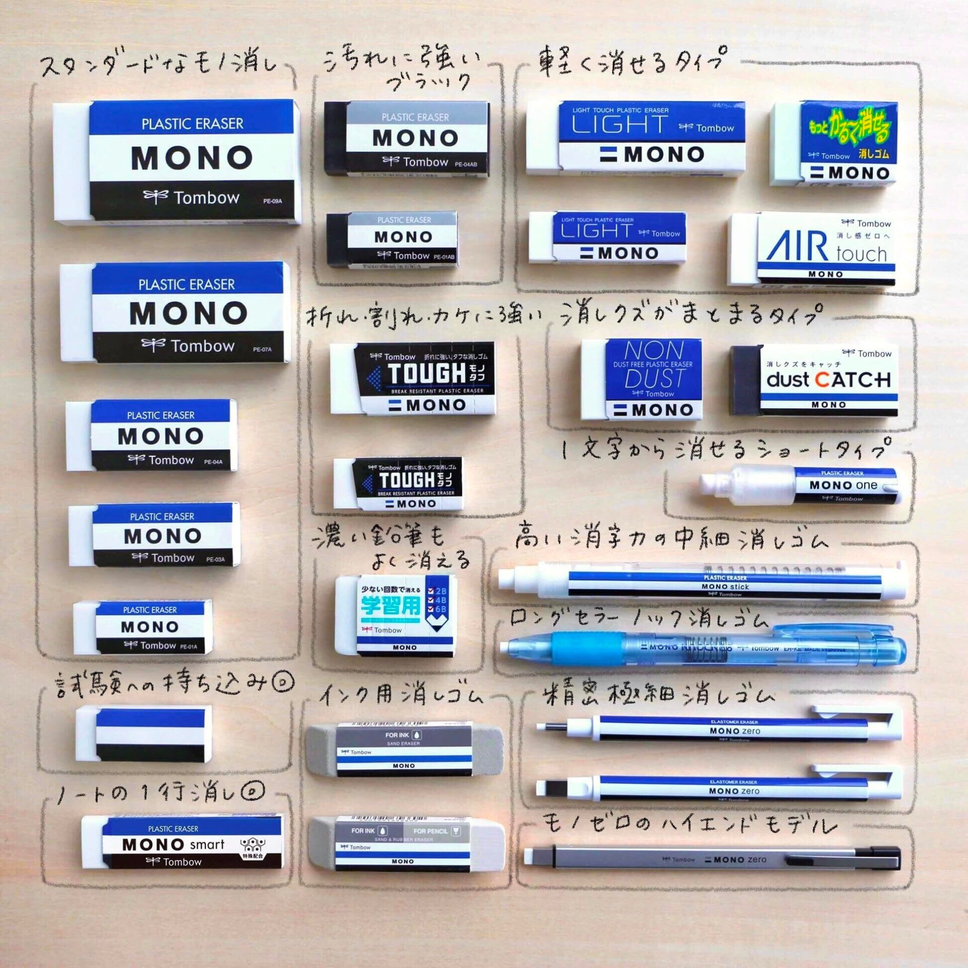1969年、プラスチック消しゴム「MONO」が誕生。96%以上という確かな消字率が支持され、現在まで事務用消しゴムのトップモデルとしてあり続けている。