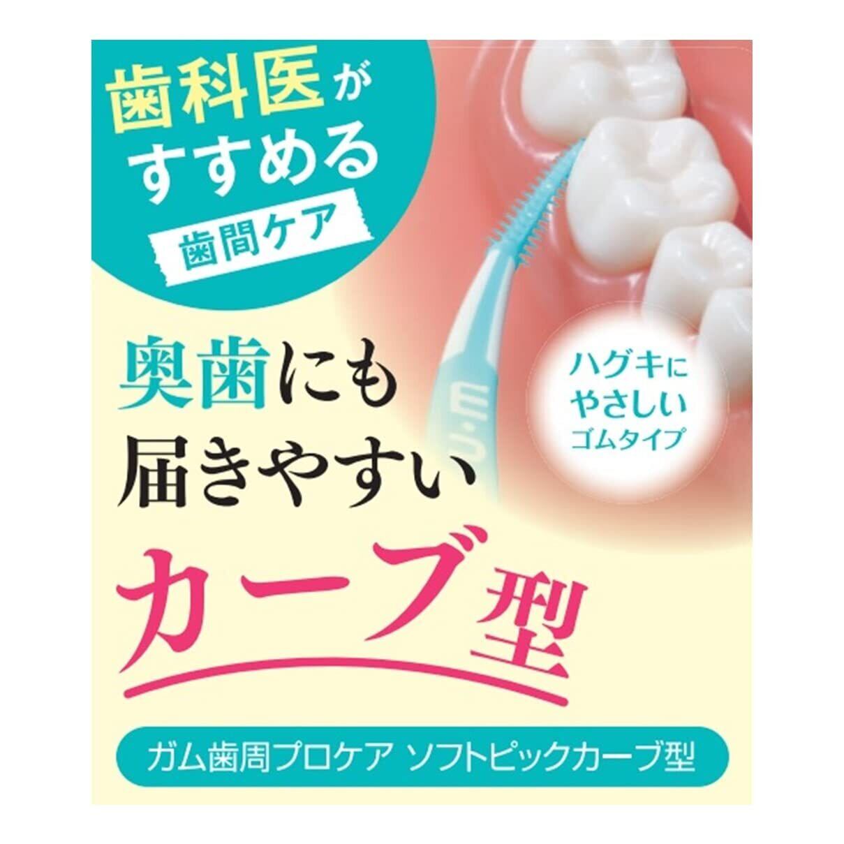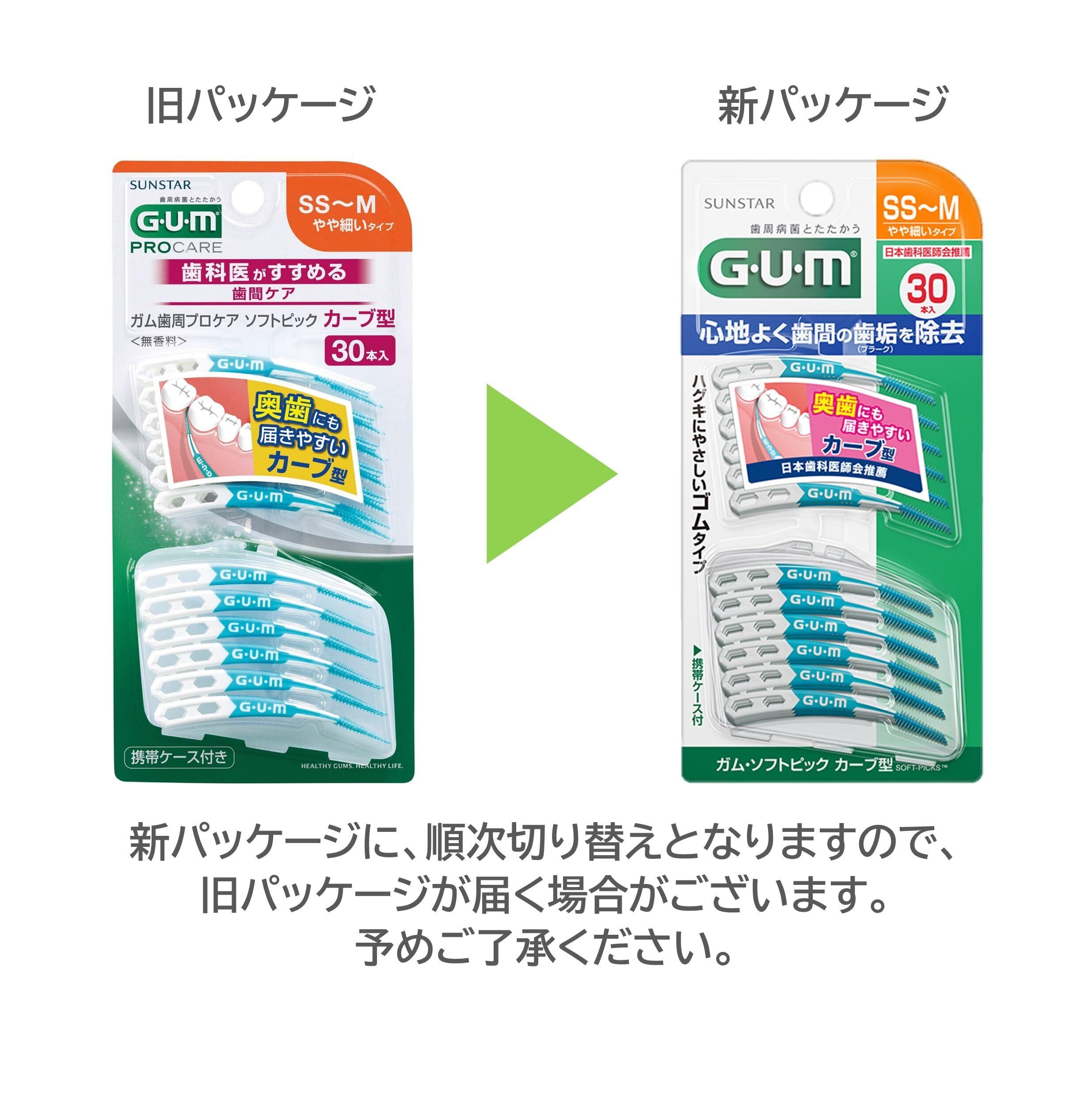 GUM(ガム) 歯周プロケア ソフトピック カーブ型 歯間ブラシ やわらか ゴムタイプ ケース付き [サイズ:SS~M やや細いタイプ] 30本入 単品