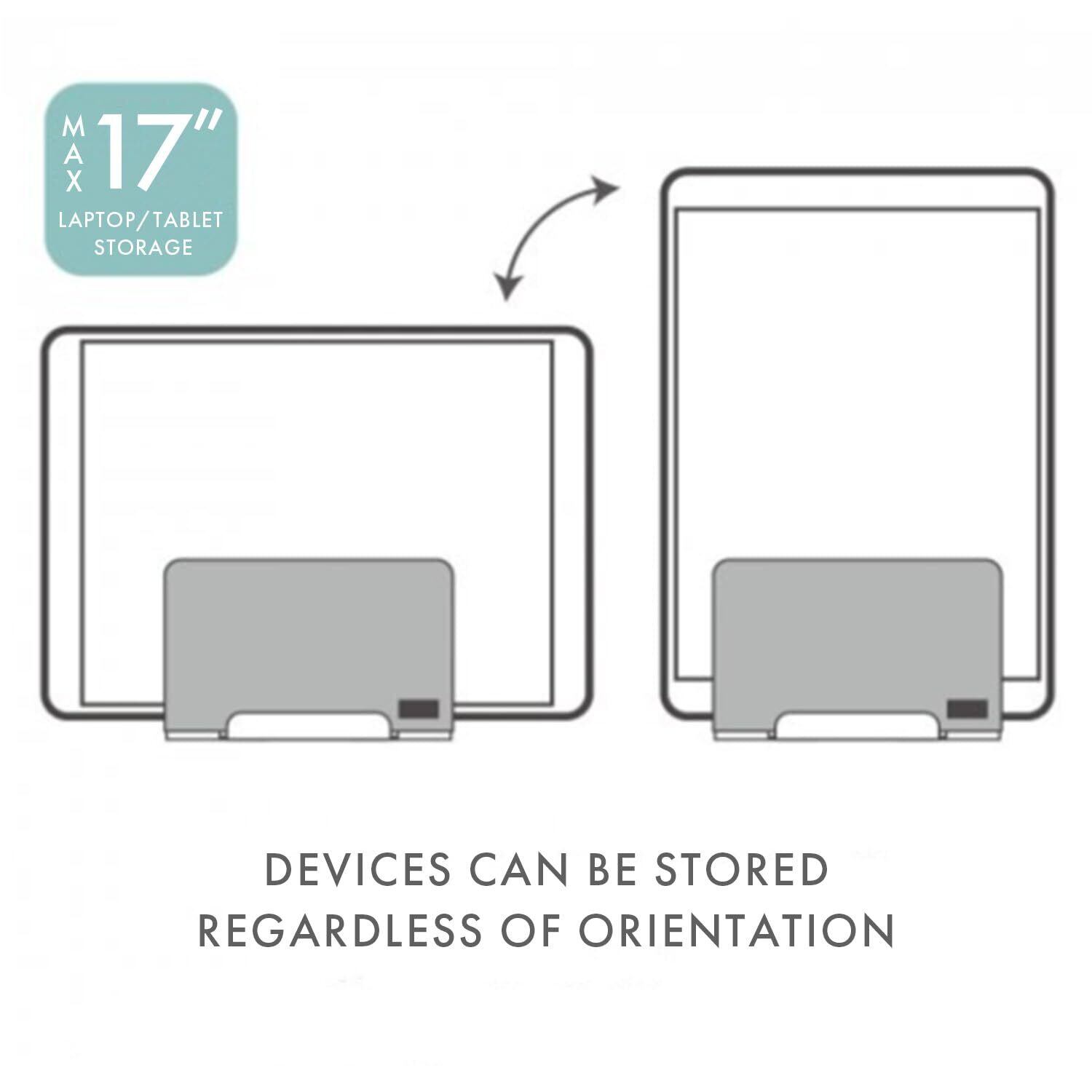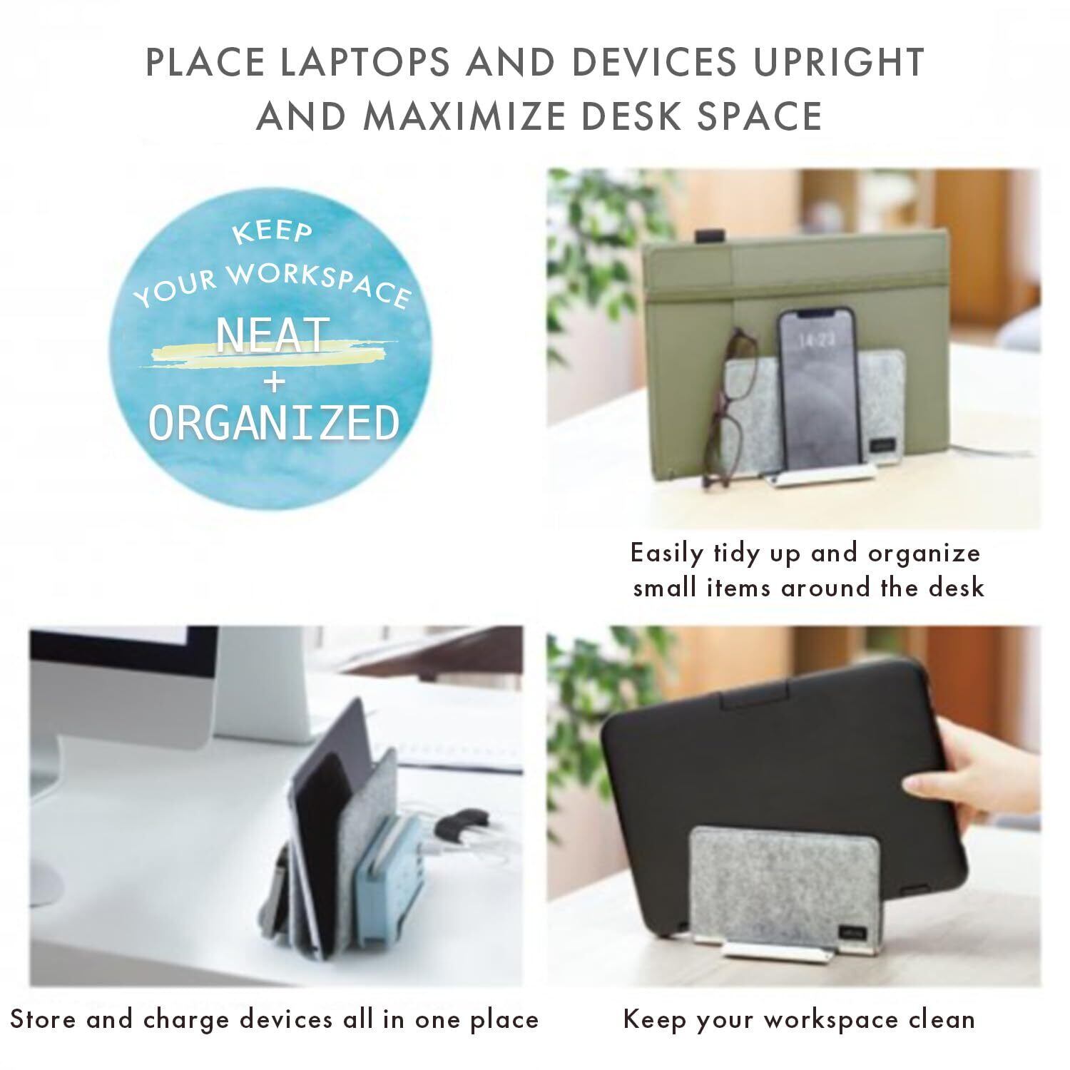 最大17インチまでのノートPC・タブレット収納可能。その他手帳など、デスク周りの小物収納にも。