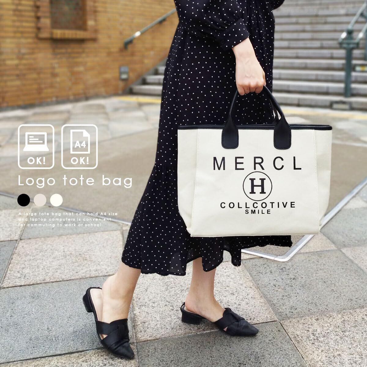ロゴが可愛いトートバック。A4サイズやノートパソコンもスッポリ入るほど大容量なトートバックなので普段使いや通勤 通学に便利なバッグです。 マグネットボタンで開閉が簡単◎防犯対策にも中身の落下防止にもなります。 持ち手はPUレザーを使用しているので上品でおしゃれなバッグです。