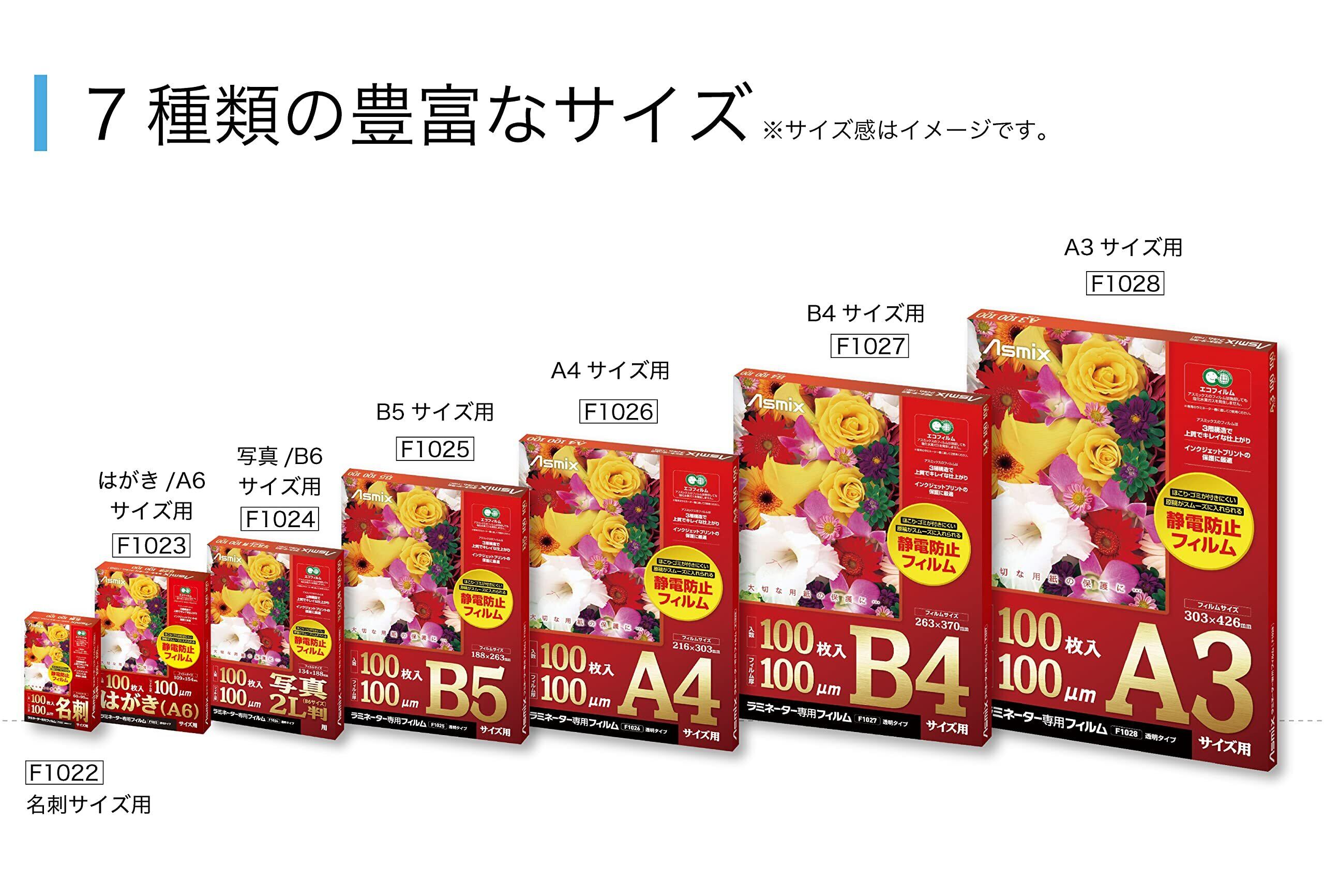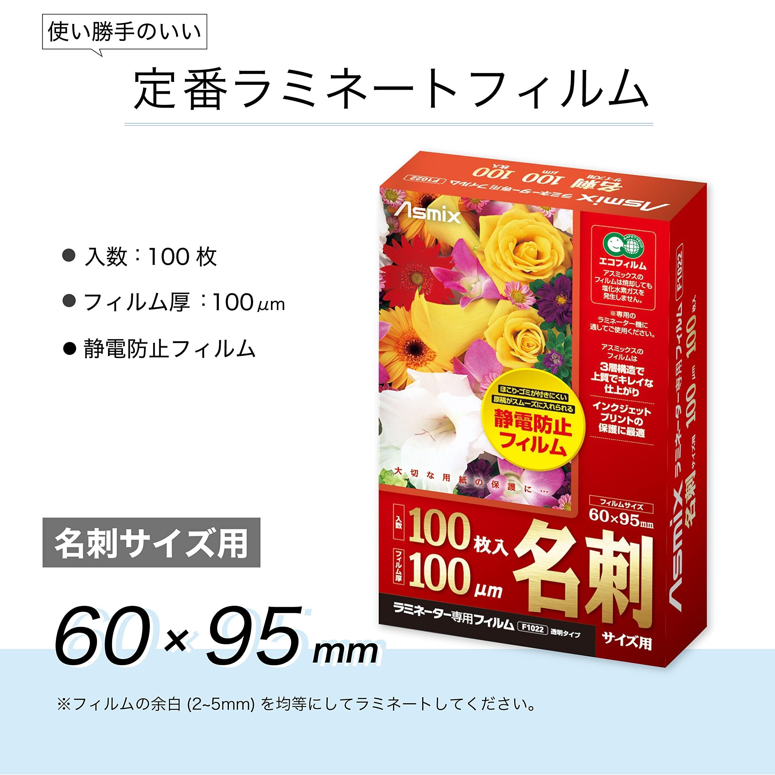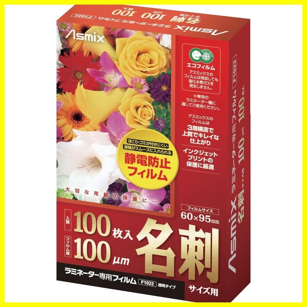 アスカ Asmix ラミネートフィルム 名刺サイズ F1022 静電防止 100枚入り 100μ