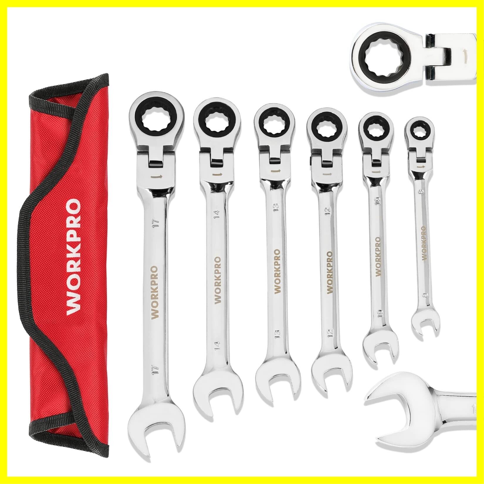WORKPRO フレックスラチェットレンチ 首振りラチェット コンビネーションレンチセット コンビセット 両用ヘッド スパナ レンチ 角度調整可能 72ギア 6本組 自動車修理 車メンテナンス 組み立て DIY用 収納袋付き