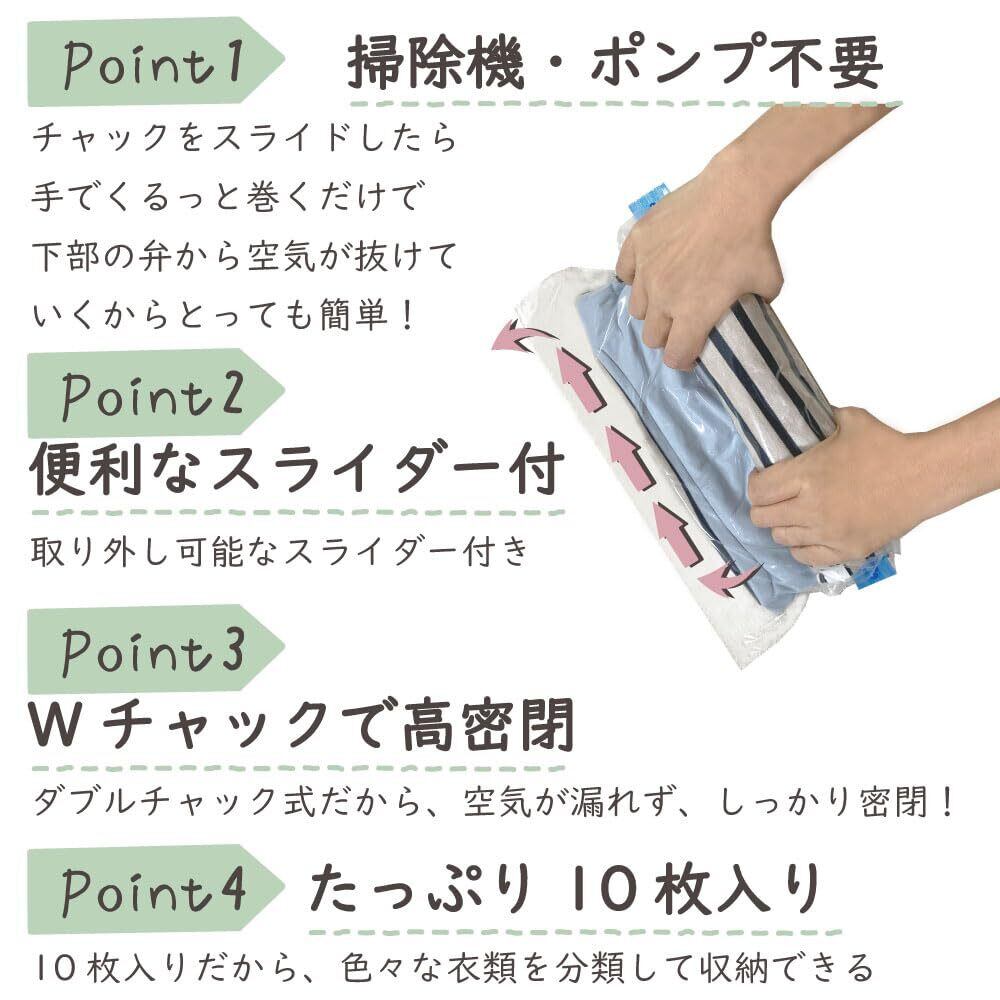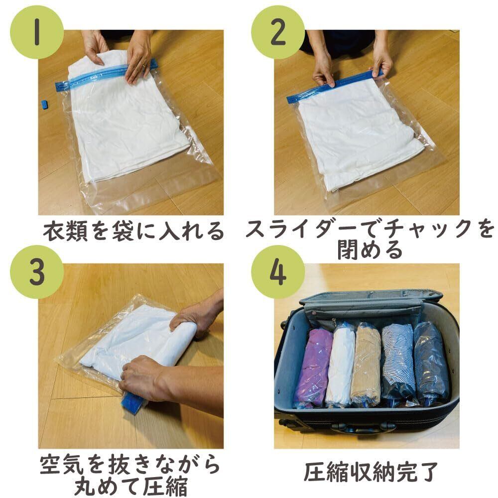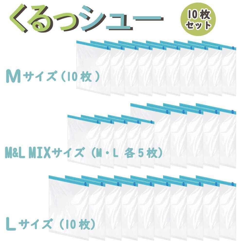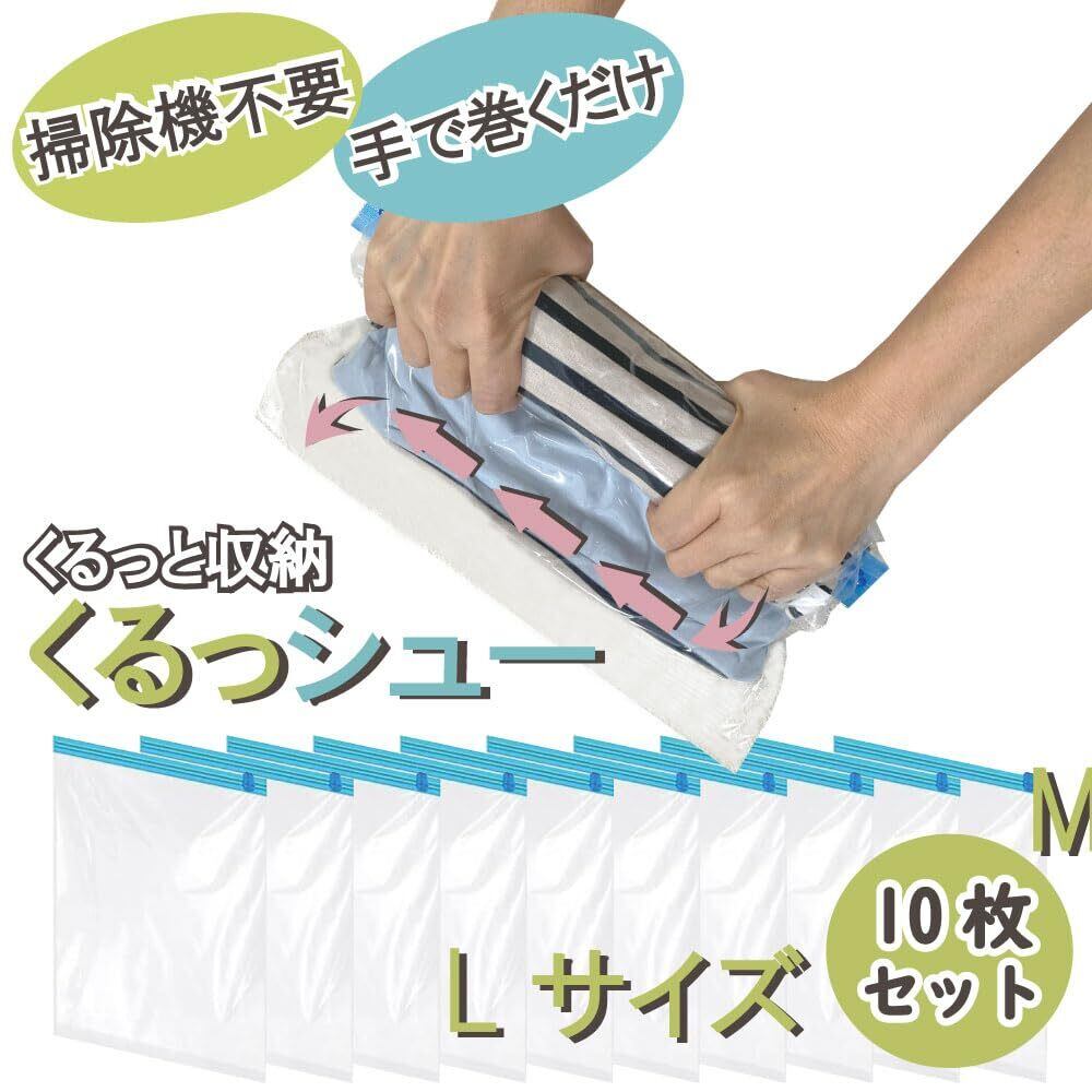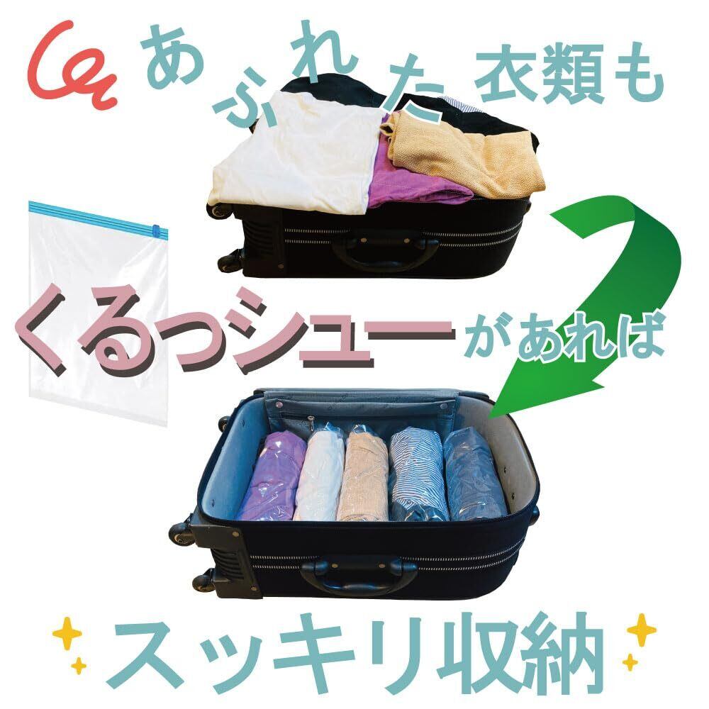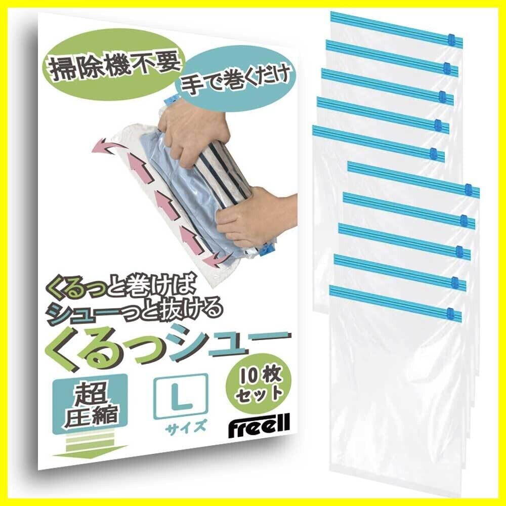 衣類圧縮袋 くるっシューLサイズ 掃除機不要 手で巻くだけの圧縮袋 くるっと巻けばシューっと抜ける 衣類用圧縮袋 旅行 出張 修学旅行 家族旅行 合宿 真空 圧縮 Freell (Lサイズ 10枚)