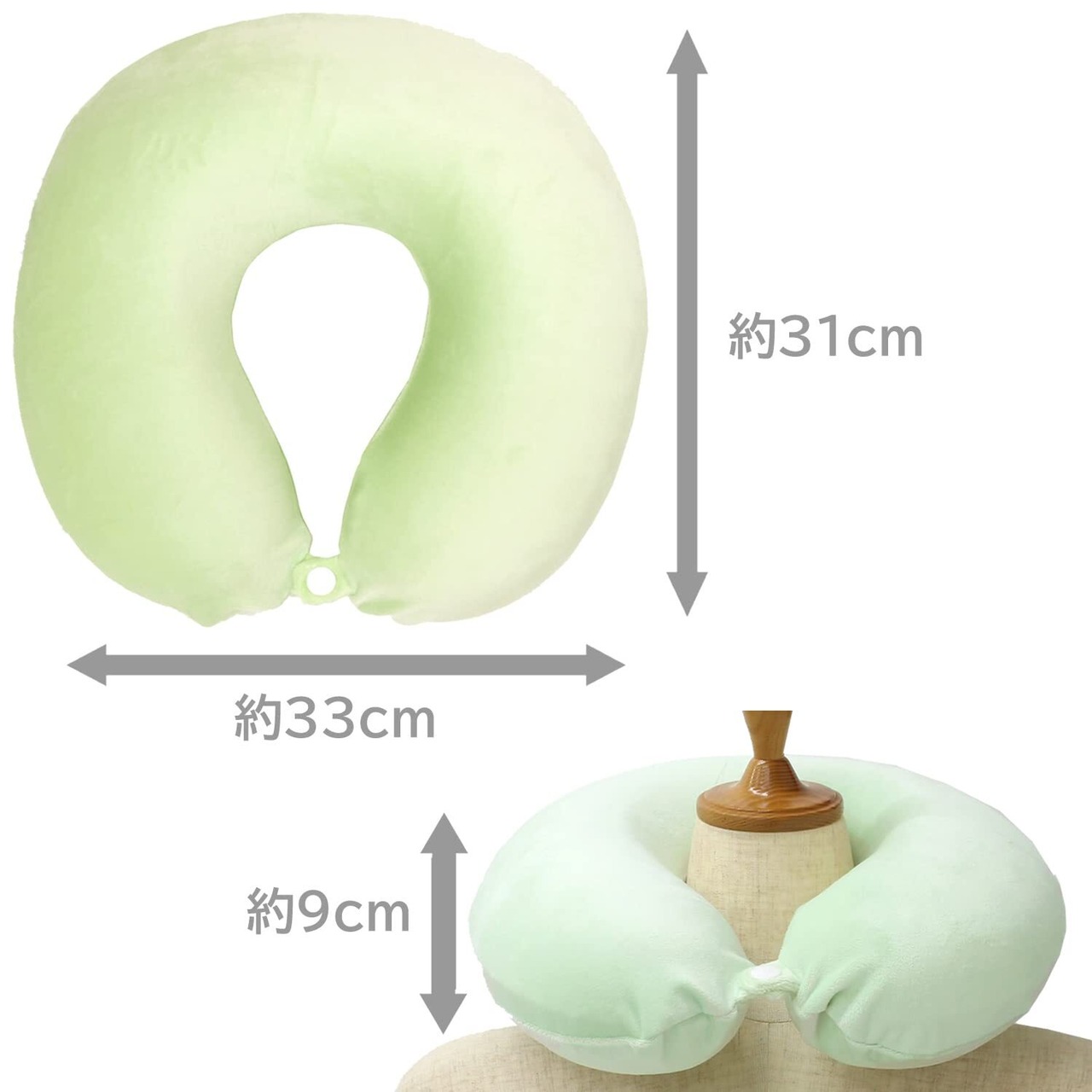 メリーナイト 枕 低反発ネックピロー 「もちとろん」 グリーン U型 外して洗えるカバー付き 首元ボタン付きでズレにくい ウレタン 仮眠枕 うつぶせ寝 オフィス デスクワーク 休憩中 ドライブ 旅行 MTR1005-53