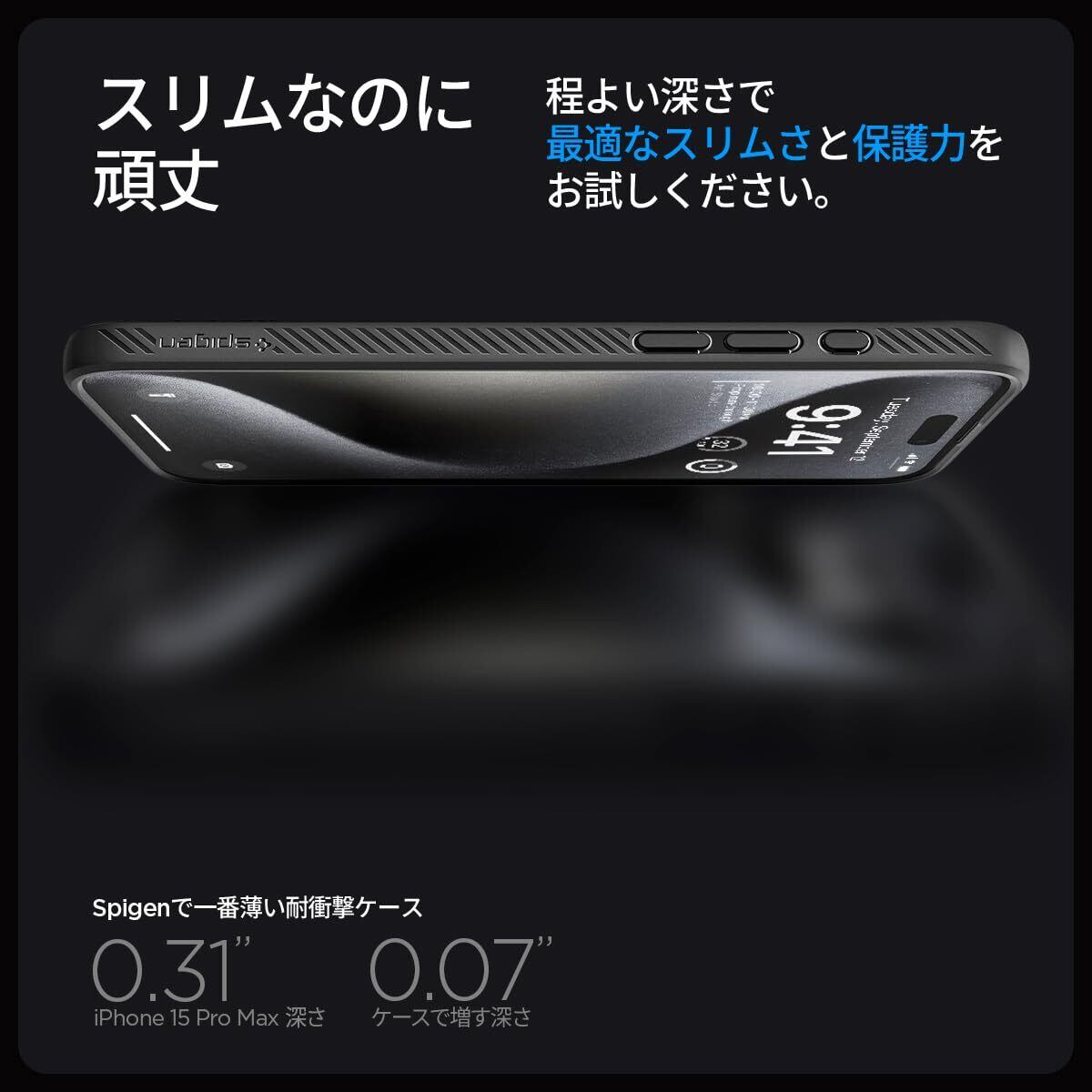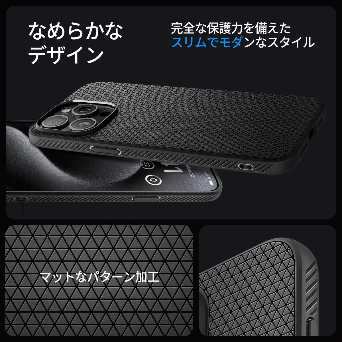 Spigen 【創業18年の技術力】 iPhone 15 Pro Max ケース マット ソフト 米軍MIL規格 耐衝撃 ワイヤレス充電 リキッド・エアー ACS06562 (マット・ブラック)