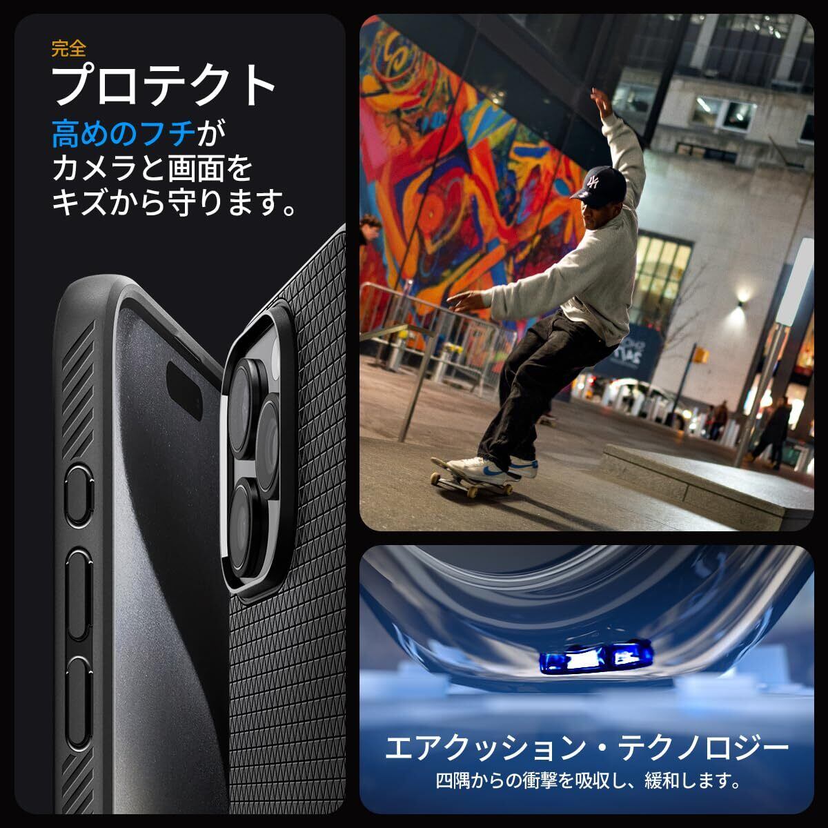 【米軍MIL規格取得】 落下時の衝撃を出来る限り緩衝出来るよう、四隅で衝撃を吸収する「エアクッションテクノロジー」を採用しています。