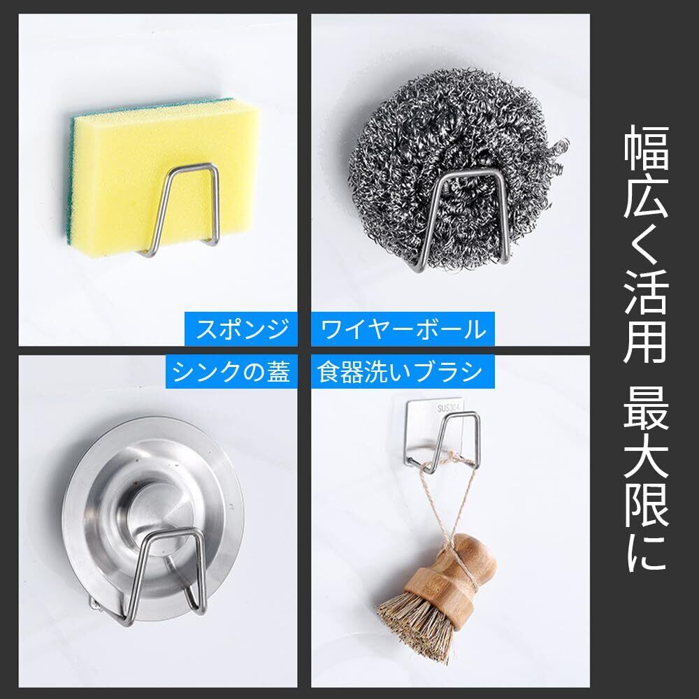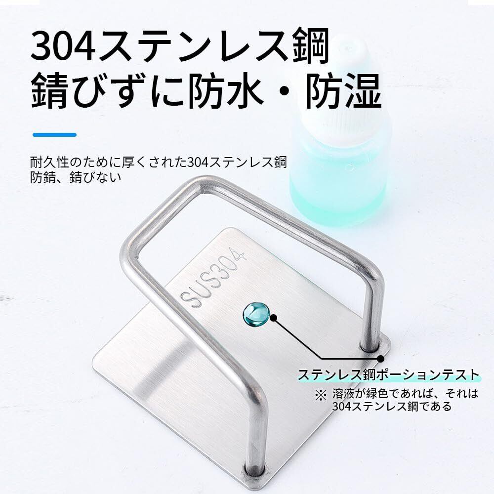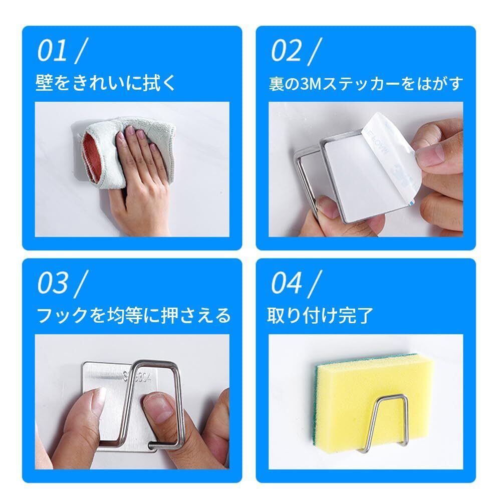 【錆びない、水に強い】高品質の304ステンレス鋼を使用しているため、この粘着フックは防水性と錆びにくさを備え、長い耐用年数があります、また、フックの角は滑らかで、衣類や手を傷つけることがありません。