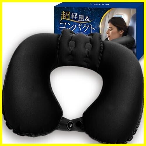 【じゃらん掲載】LIXIA ネックピロー コンパクト ポンプ式 軽量 【ヘッドレスト付き】 飛行機 首枕 旅行用 エアー (電車/飛行機/車などに)(ブラック)