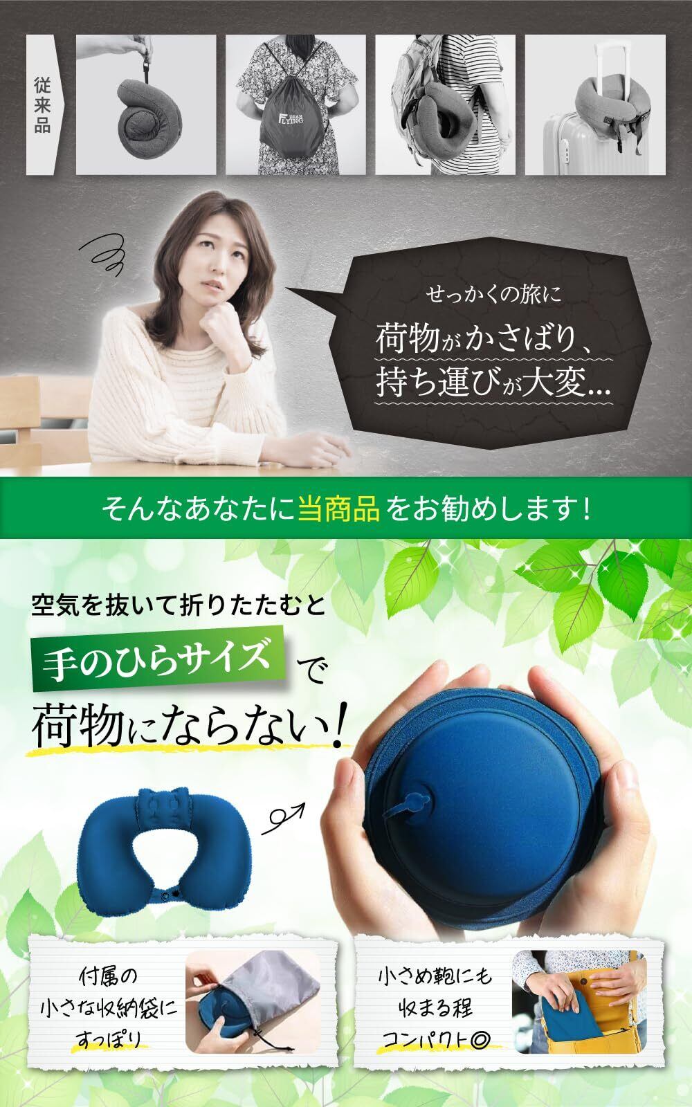 【こんなシーンで大活躍】旅行や出張などの飛行機、電車、車移動などに。デスクワーク中の首預け場に。車中泊やお昼寝などの睡眠時などには携帯枕としても大活躍!どこにでも持ち歩きたい一品です。