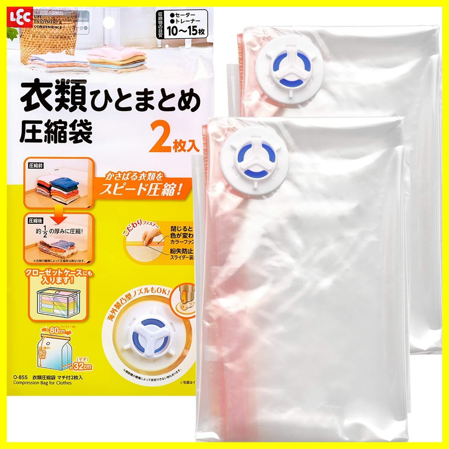 レック(LEC) Ba 衣類圧縮袋 マチ付き 2枚入 (自動ロック式) O-855
