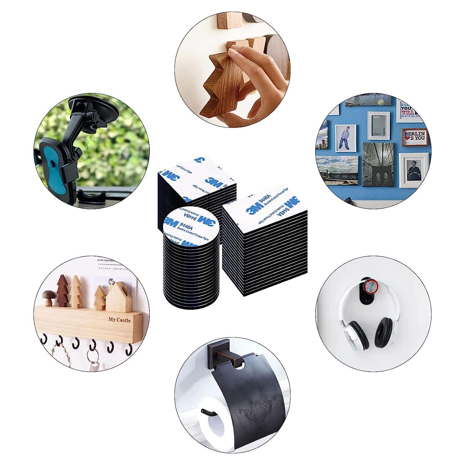 60個入れ 強力両面テープ 長方形 丸型 はがせる両面テープ 壁ポスターフック 耐熱 防水 事務用品 家庭用 車載用 ブラック