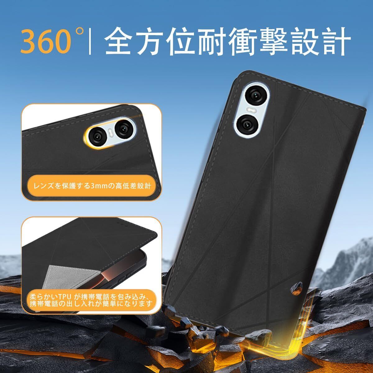 【360°全方位保護】手帳型のシェルが携帯電話の画面を完全に覆い、携帯電話の画面を完全に保護します。背面は携帯電話のカメラより3mm高く設計されており、携帯電話のカメラが衝突するのを防ぎます。携帯電話がどの角度で落ちても、全周レザーと柔らかいTPU内装で携帯電話をしっかり保護します。