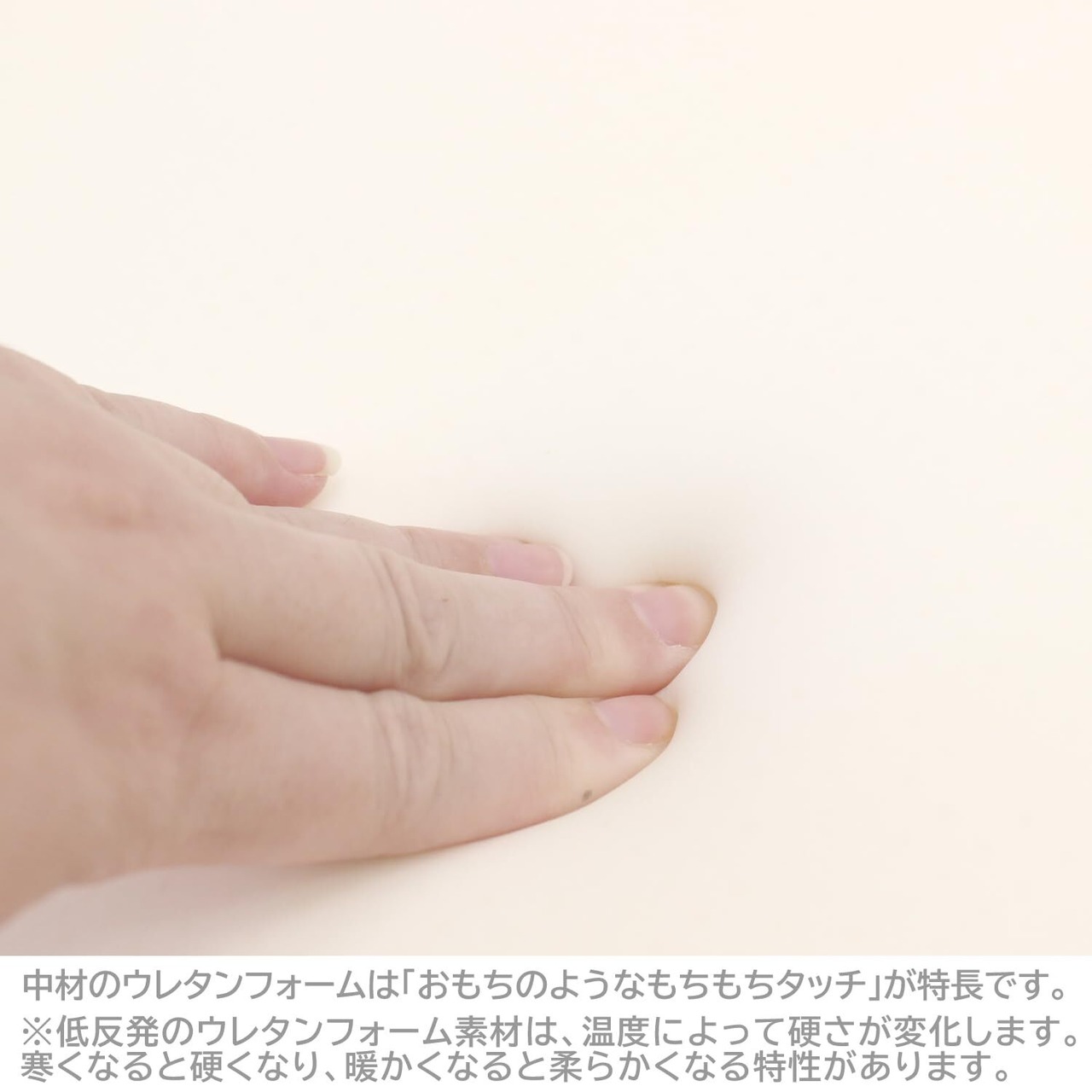 ※低反発ウレタンフォーム素材は、温度によって硬さが変化します。寒くなると硬くなり、暖かくなると柔らかくなる特性があります。