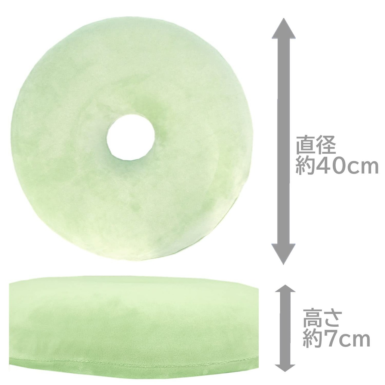 メリーナイト クッション 低反発円座クッション 「もちとろん」 グリーン 直径約40㎝ チェアパッド ウレタン ドーナツ型 リビング 座布団 在宅勤務 自宅 オフィス デスクワーク ドライブ MTR1001-53
