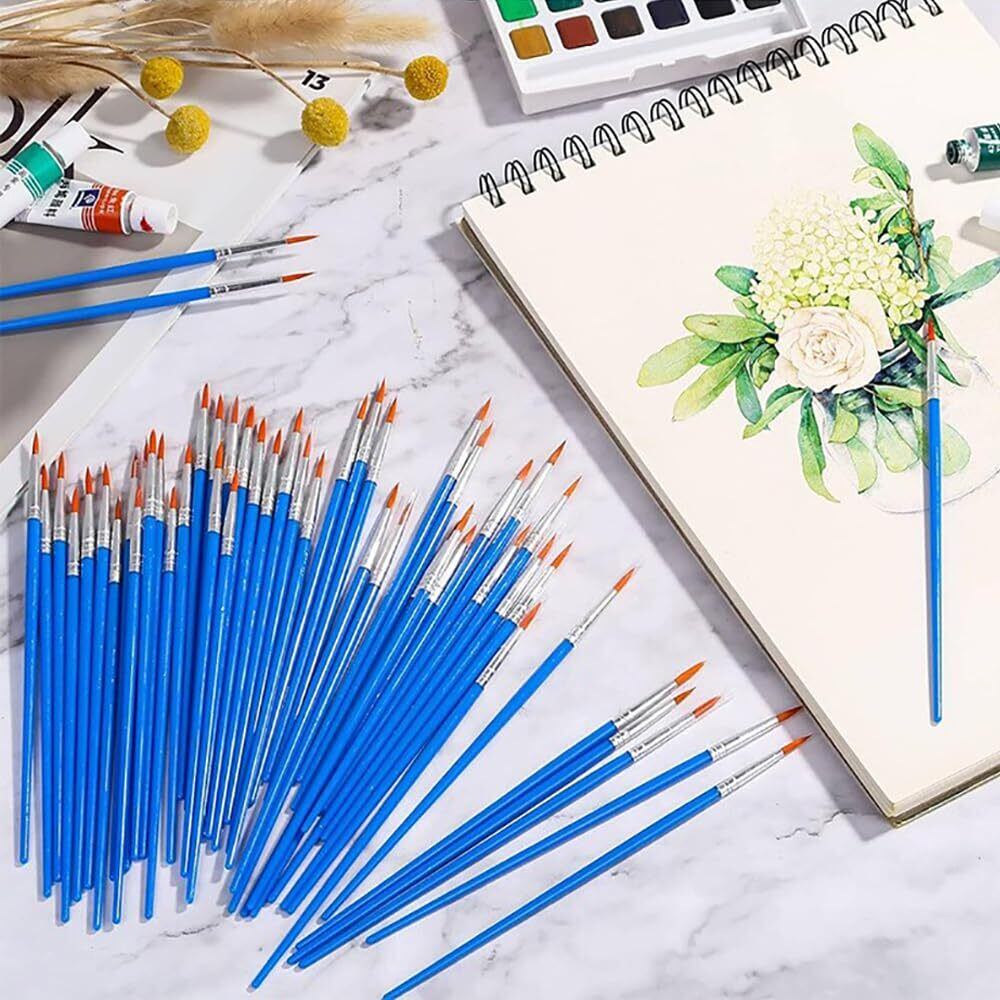 極細 丸筆 絵筆 勾線筆 面相筆 100本セット 塗装 ペイントブラシ プラモデル DIY モデリング 画材筆 水彩筆 (勾線筆(ブルー))