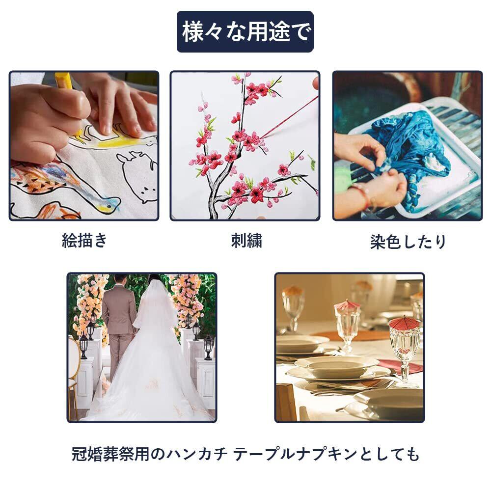 【用途】冠婚葬祭用のハンカチやテーブルナプキンとしてお使いいただくことができます。染色や刺繍にもピッタリ、絵を描いたりすることもできます。
