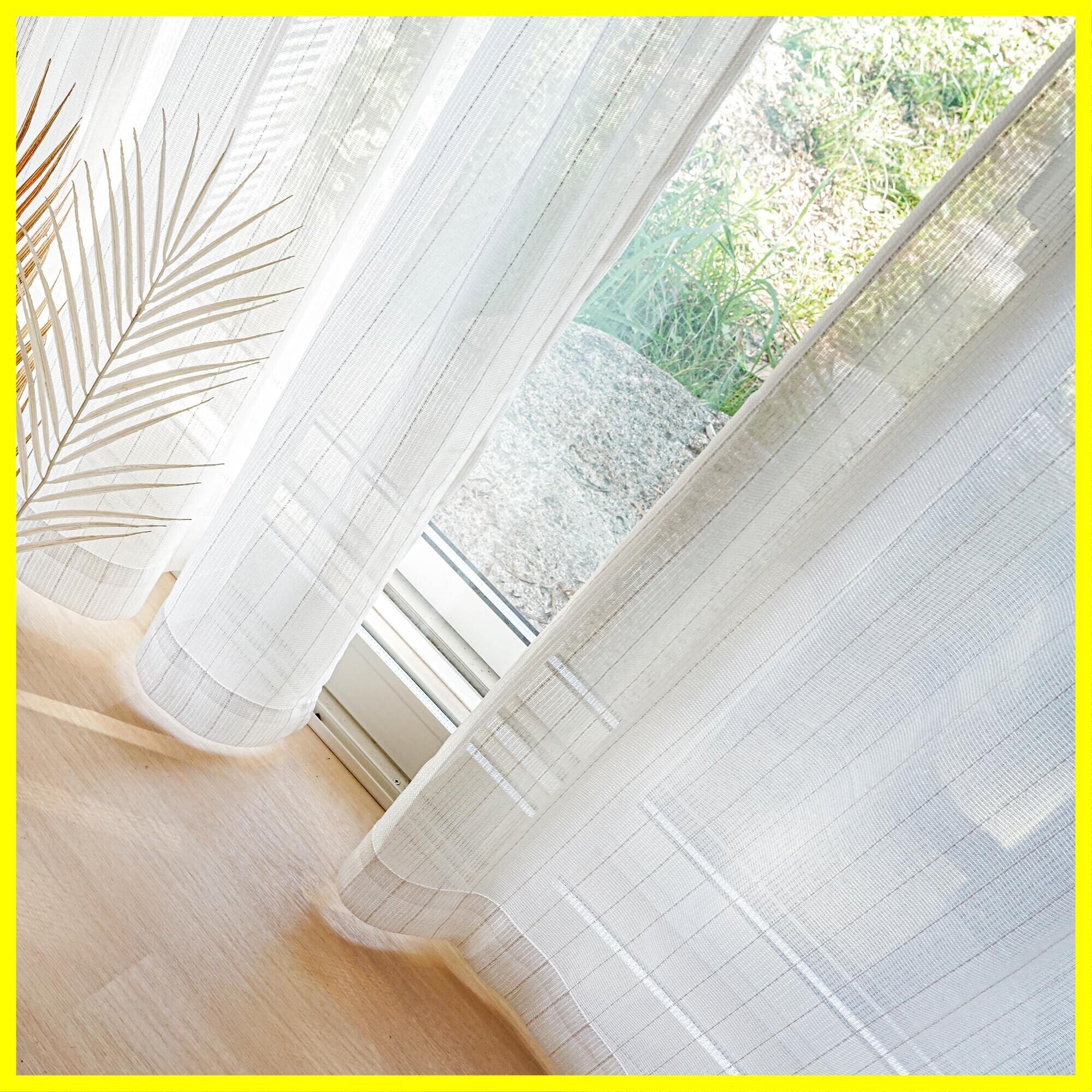 レースカーテン 2枚組 昼間 外から見えにくい ミラー UVカット カーテンフック装着済みでお届け おしゃれ ストライプ刺繍 幅100x丈188cm 2枚セット