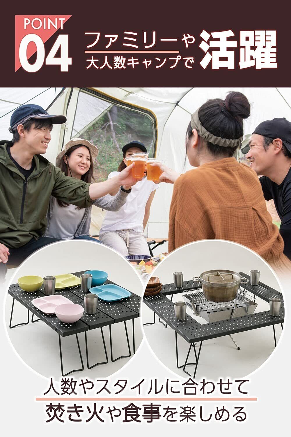 [キャンパーズコレクション 山善] テーブル キャンプ アウトドア (焚き火 バーベキュー) 組み合わせ自由(囲炉裏スタイル ローテーブル) ブラック TT-8366