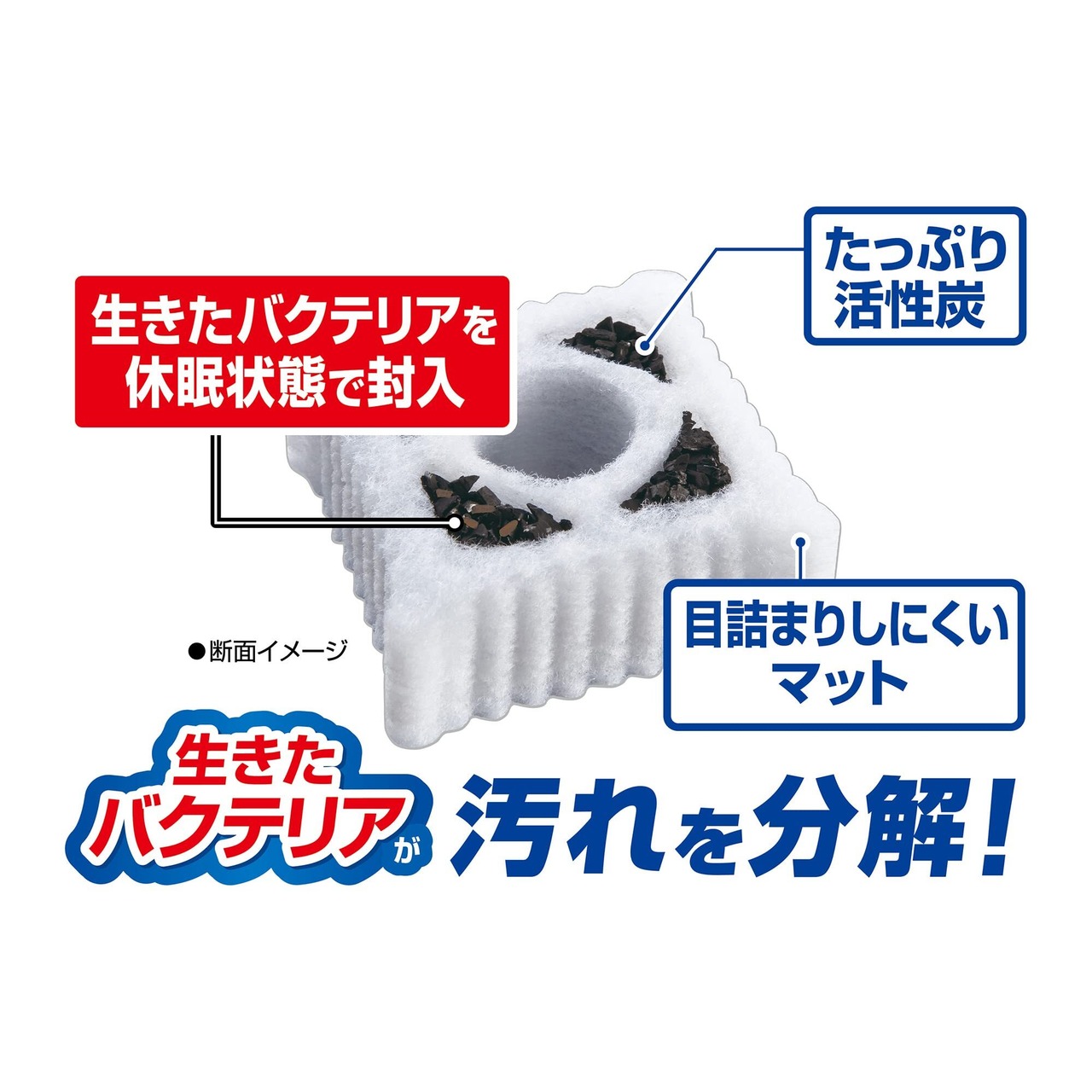 生きたバクテリアを休眠状態で封入しているので、汚れやすい水槽に最適です。汚れをすばやく分解し、キレイな水にします。