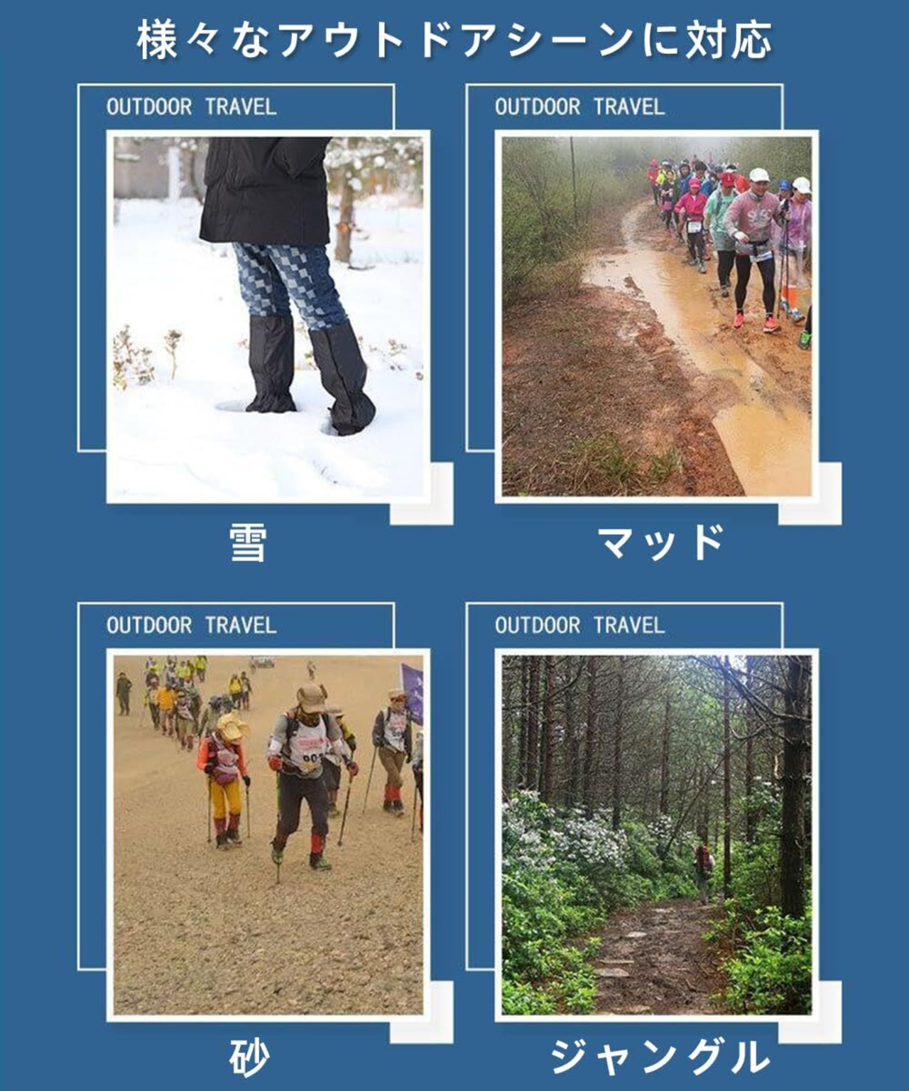 【雨や雪、砂埃、泥汚れからしっかり保護】登山用ゲイター・スパッツは、あらゆる天候や地形に対応し、あなたの足元を完璧に守ります。あらゆる自然環境での登山に欠かせないアイテムです。雨や雪、砂埃や泥汚れから足元を徹底的に守り、登山中の快適さを保ちます。自然の中での冒険を楽しみましょう!