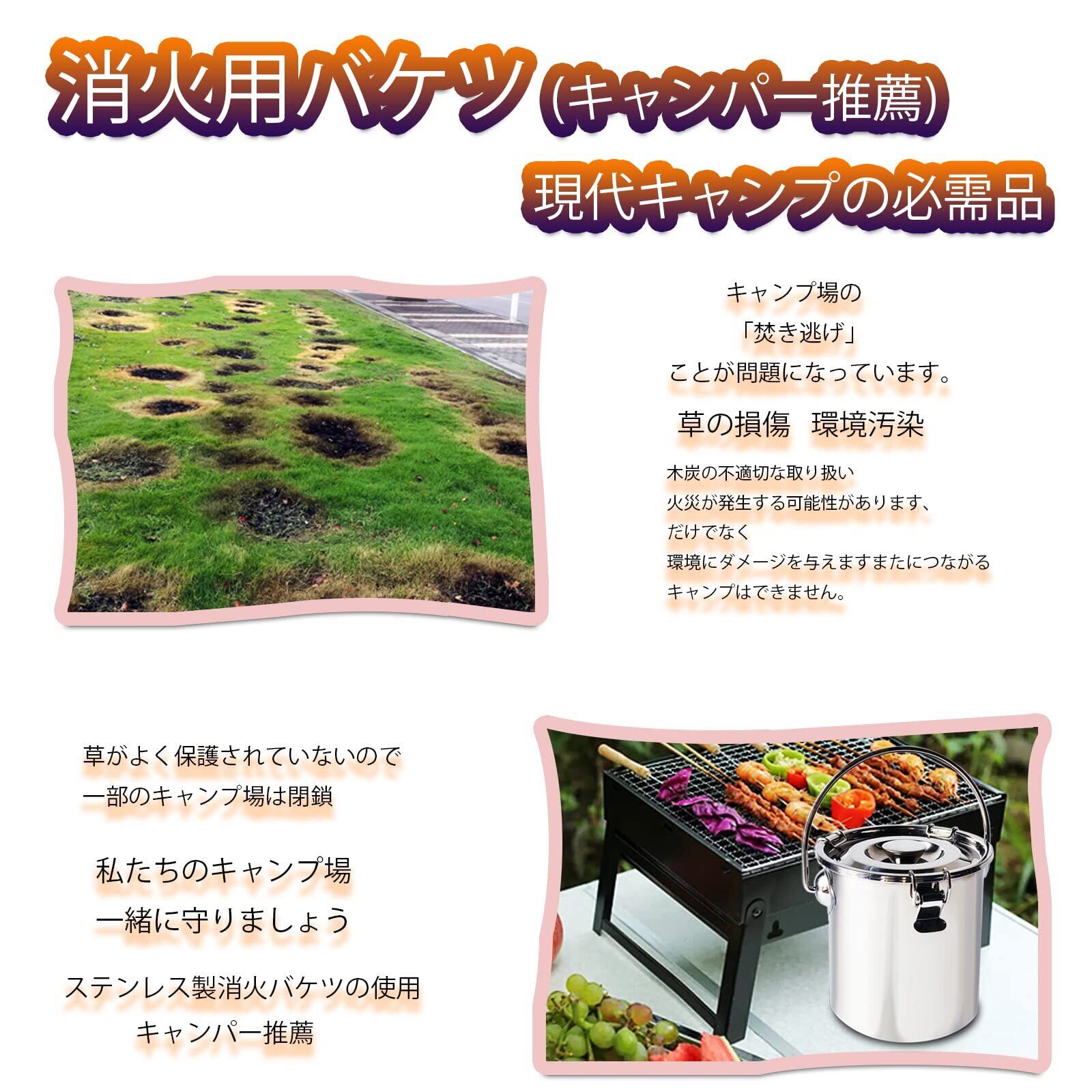 ②機能メリット:3つのロックが蓋を閉めることができ、蓋を閉める時にステンレスチャコール樽の密封性が未燃焼済の炭を酸素遮断し、無酸素状態に達すると消灯します。 冷水を入れると炭を素早く冷温すると消灯状態にできます。 またバケツ内は燃えないチャコールは、キャンプや焚き火泊り、炭が必要な場合でも再利用でき、無駄を拒否します。 ステンレススチール製のチャコールバケツは水に濡れても錆びにくく、何度でも使えるので経済的です。