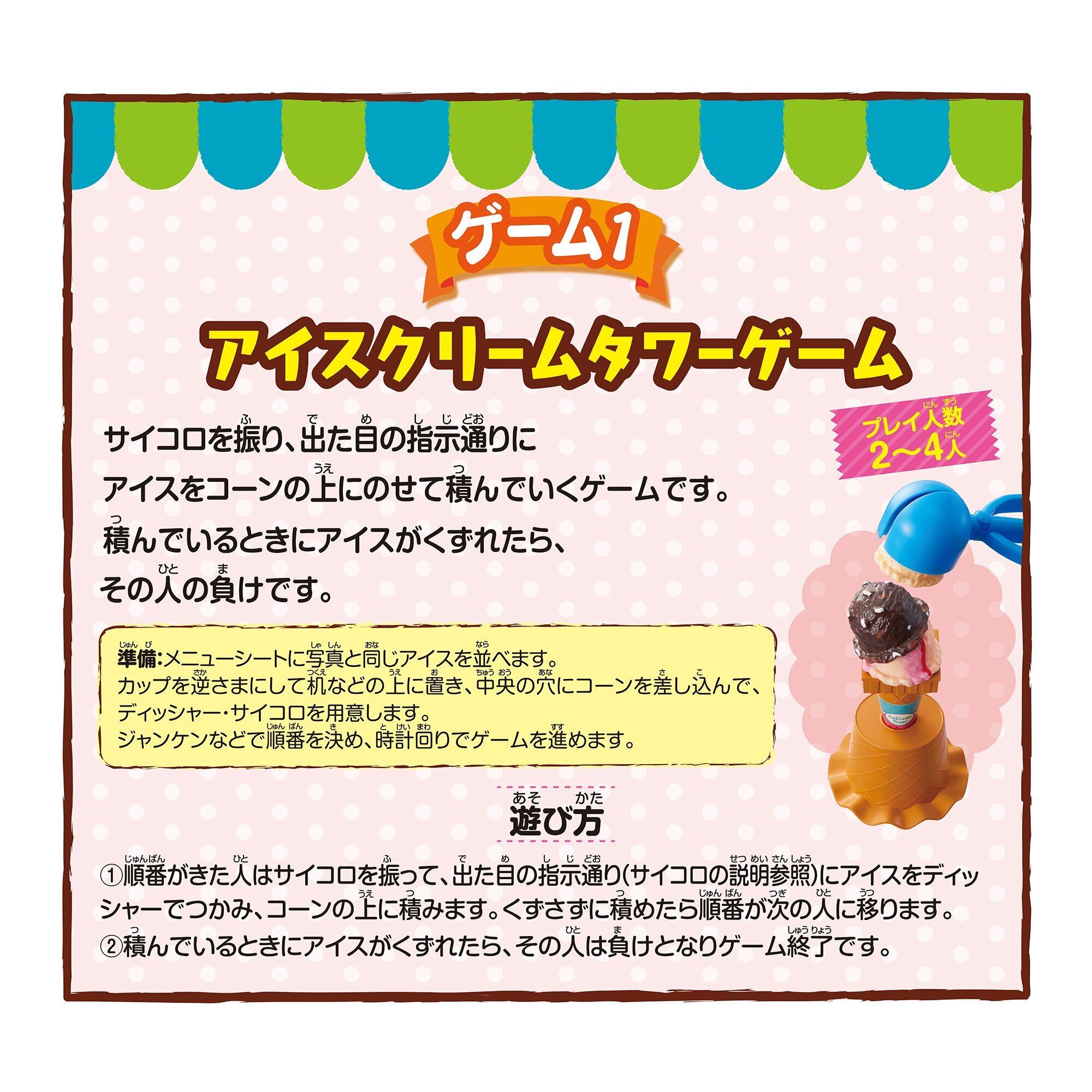 アイスをコーンに積んでいく「アイスクリームタワーゲーム」のほか、「デコレーションカップアイスゲーム」や