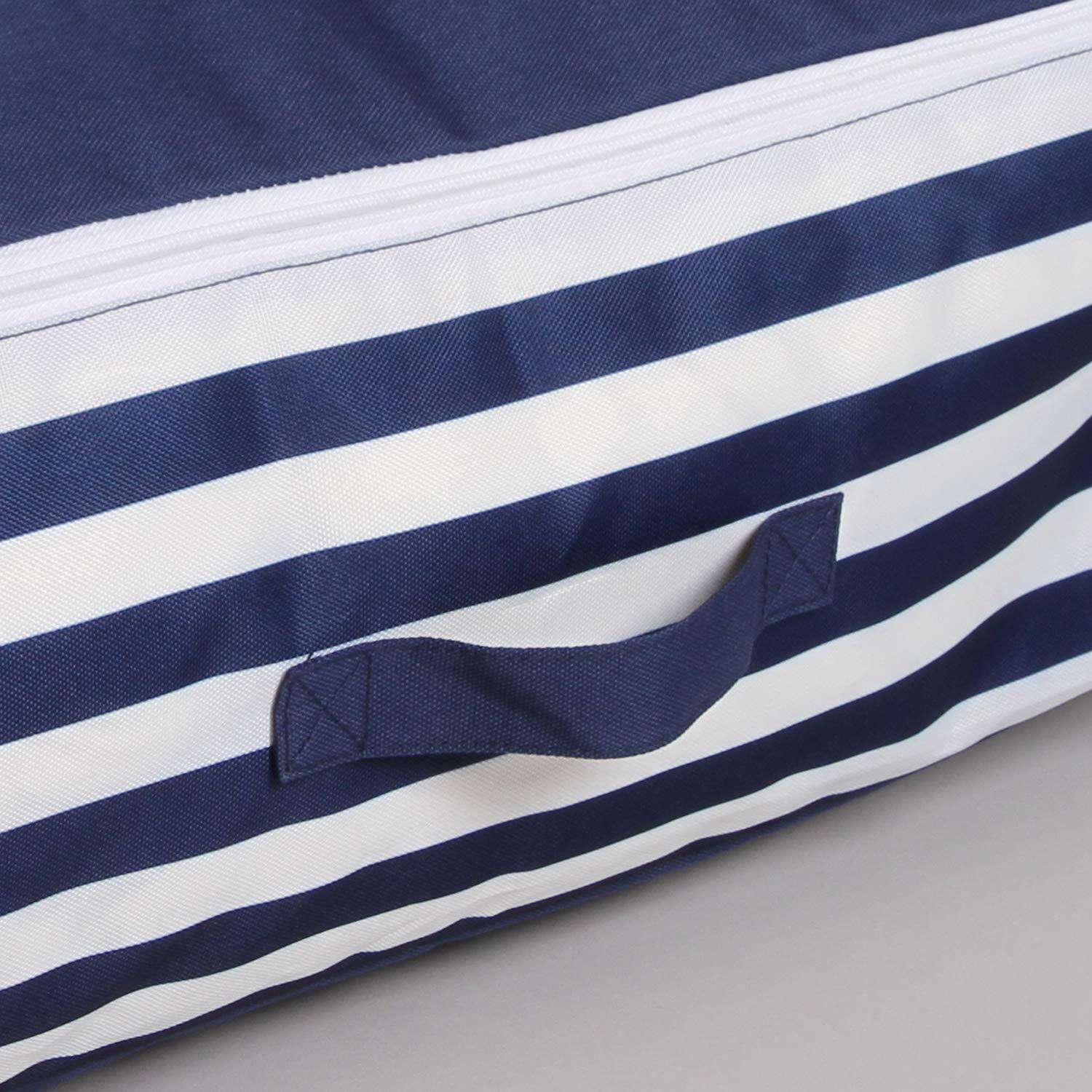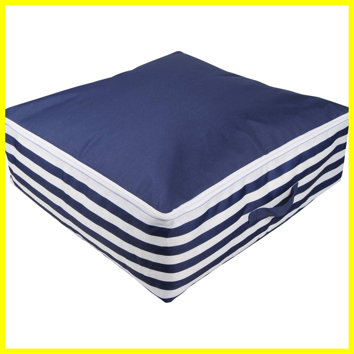 【商品仕様】:サイズ/約幅58×奥行58×高さ20cm、カラー/ネイビー、柄/ボーダー、内容/1個、収納目安/シングルサイズの羽毛布団:約1枚・毛布やタオルケット:約1~2枚、材質/ポリエステル