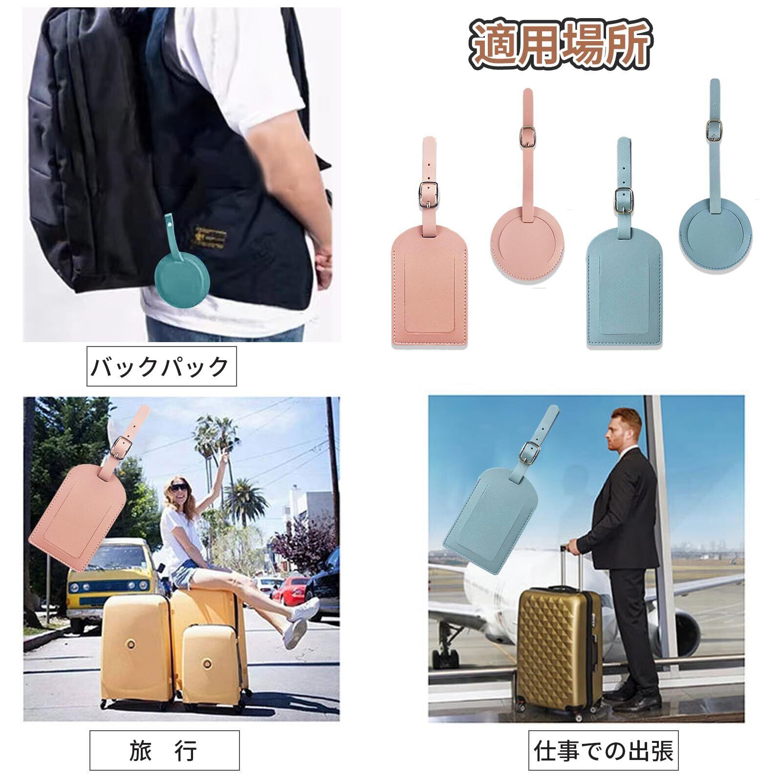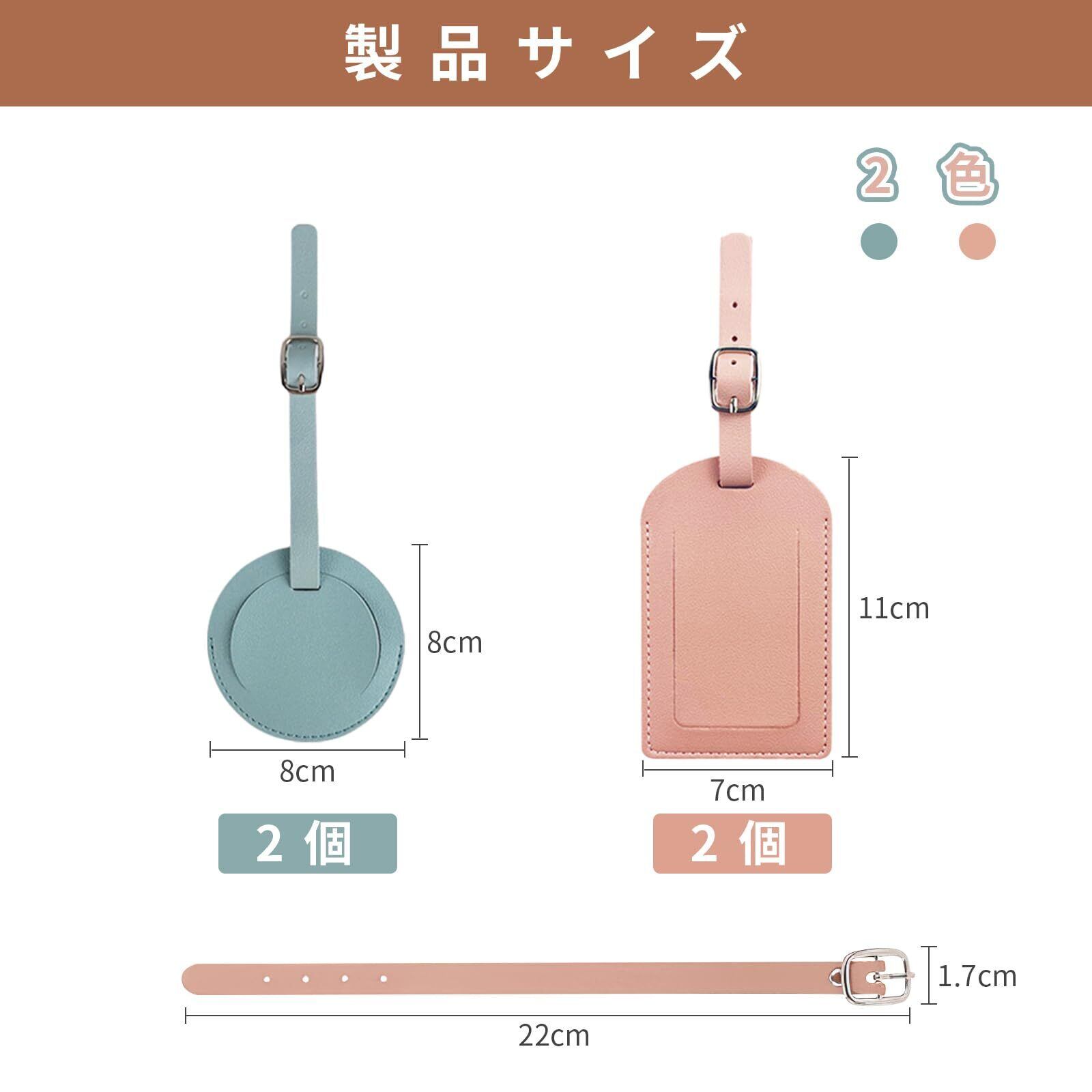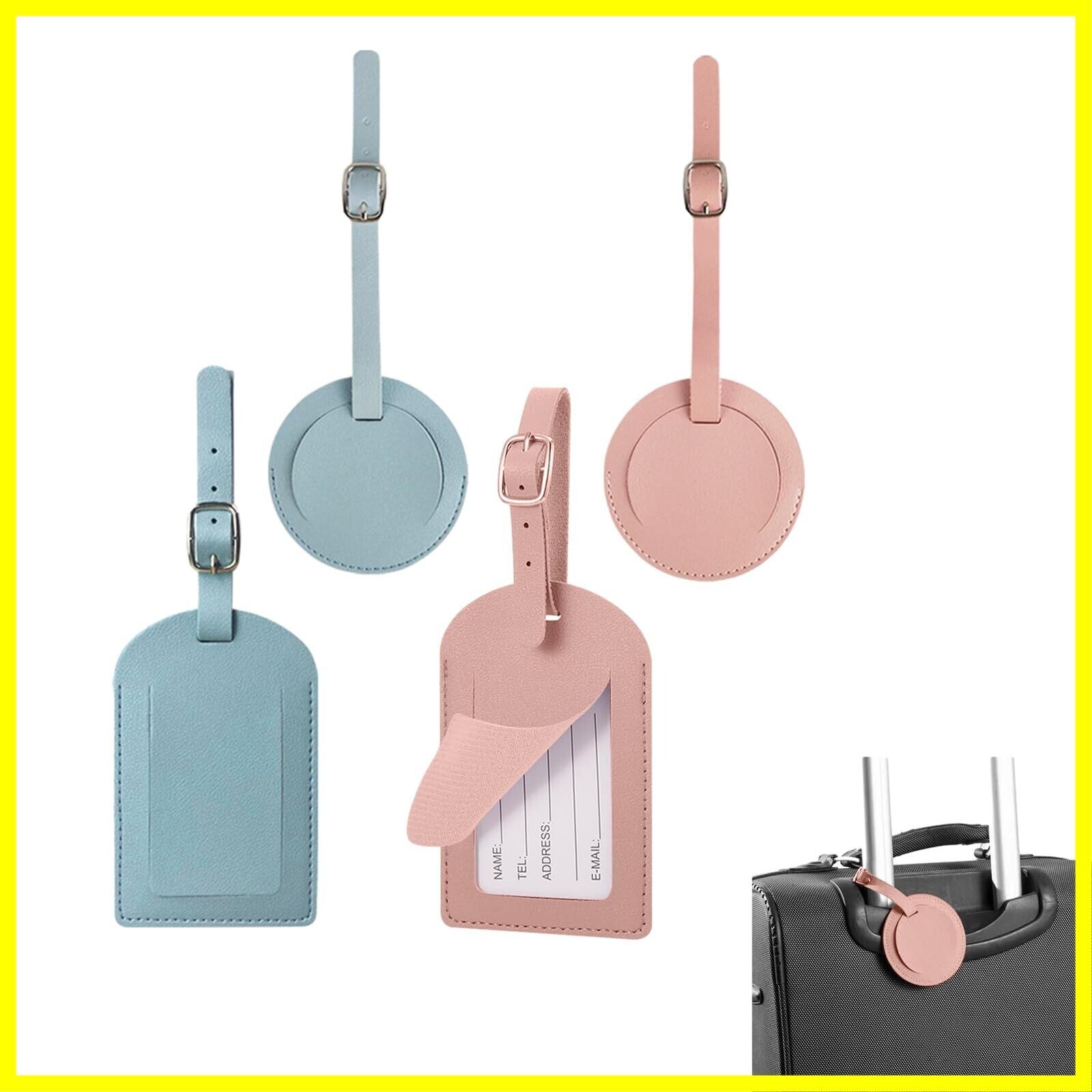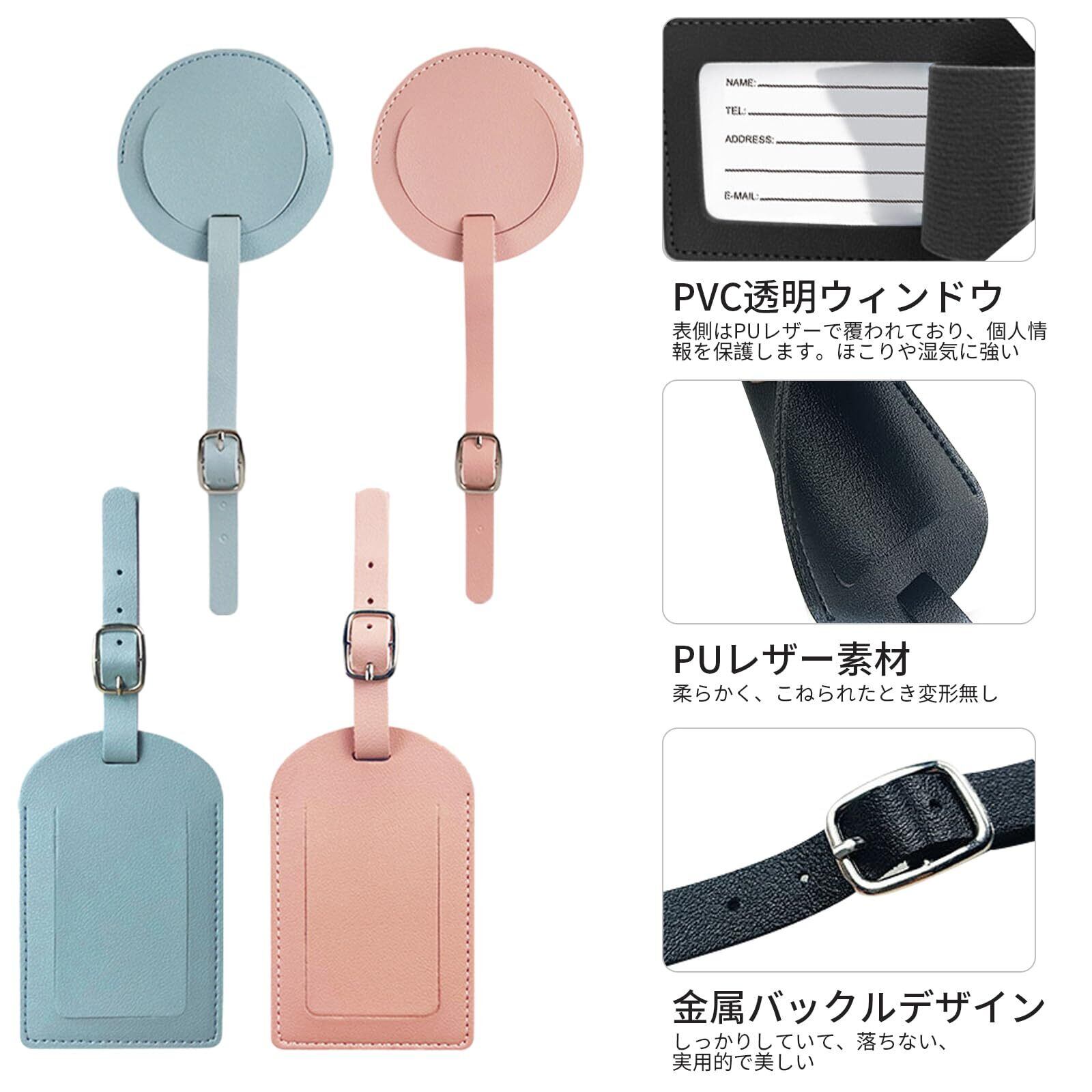 荷物タグ 4個セット バッグ用ネームタグ ネームタグPUレザー 防水 耐久性 超軽量紛失 防止ダメージ耐性 IDカードスタッフ 出張用、スーツケース、バッグ、名刺入れ 旅行 軽量 (ピンク+ライトブルー)