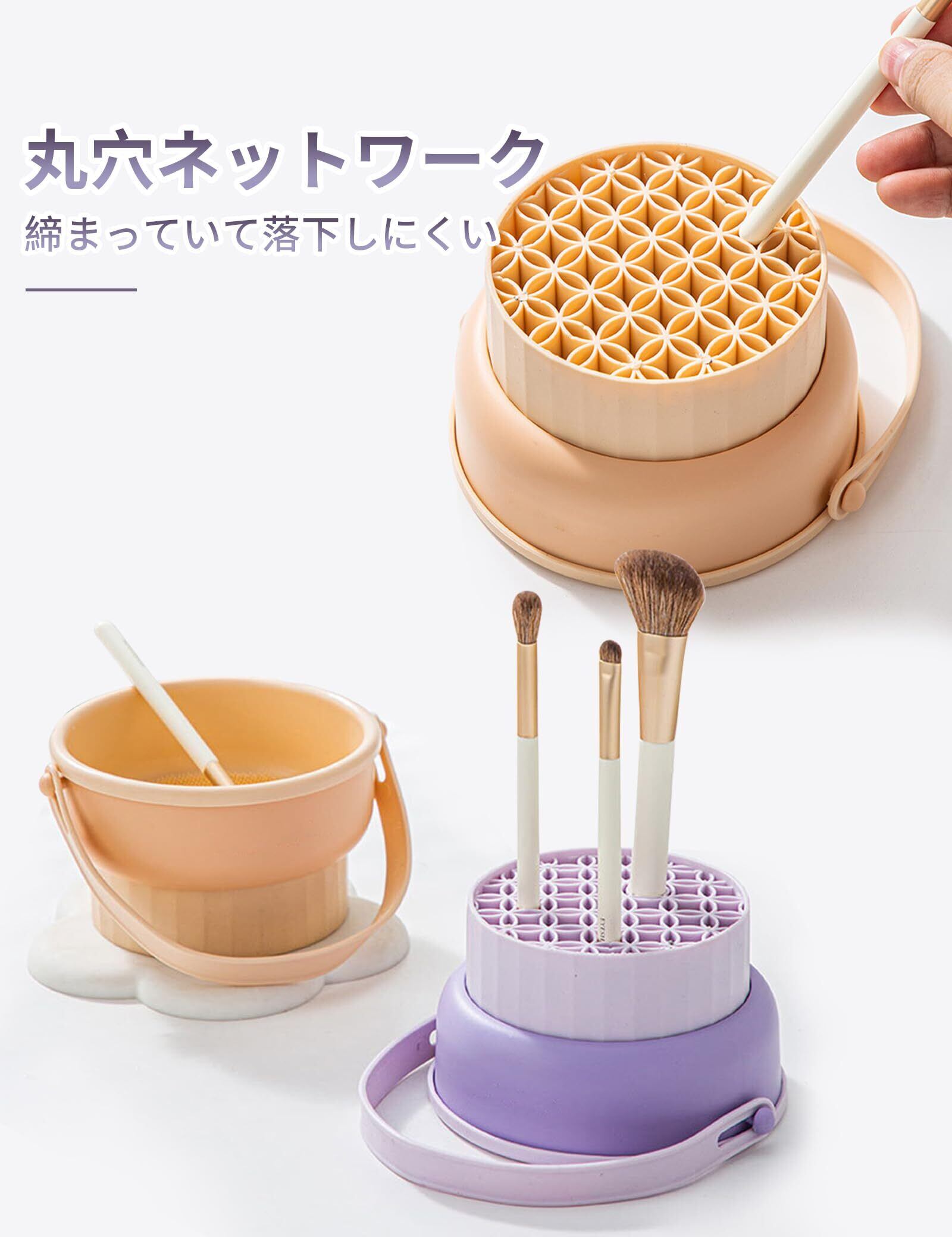 【3in1・多機能】メイクブラシの洗浄、乾燥、収納の3つの機能を1つにまとめた製品。 メイクブラシや美容卵を洗うだけでなく、ブラシを直接置いて乾かすこともできます。 また、ブラシを直接置いて乾かすことも、逆さにして乾かすこともできます。 乾燥後はそのまま収納でき、多機能で経済的です。