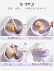 【あらゆるブランに適用】製品内部には4つの異なるサイズの凹凸があり、ブラシの大きさと汚れの程度に応じて異なる領域で使用することができ、美容卵を清潔にすることもできます。乾燥時には、美容卵を製品の中に入れ、製品の底にある小さな穴は柔らかく、どんなサイズのメイクブラシでも簡単に当てて逆さまにして乾燥させることができます。