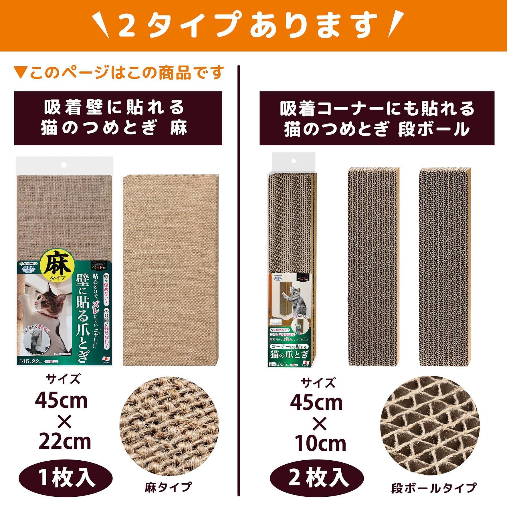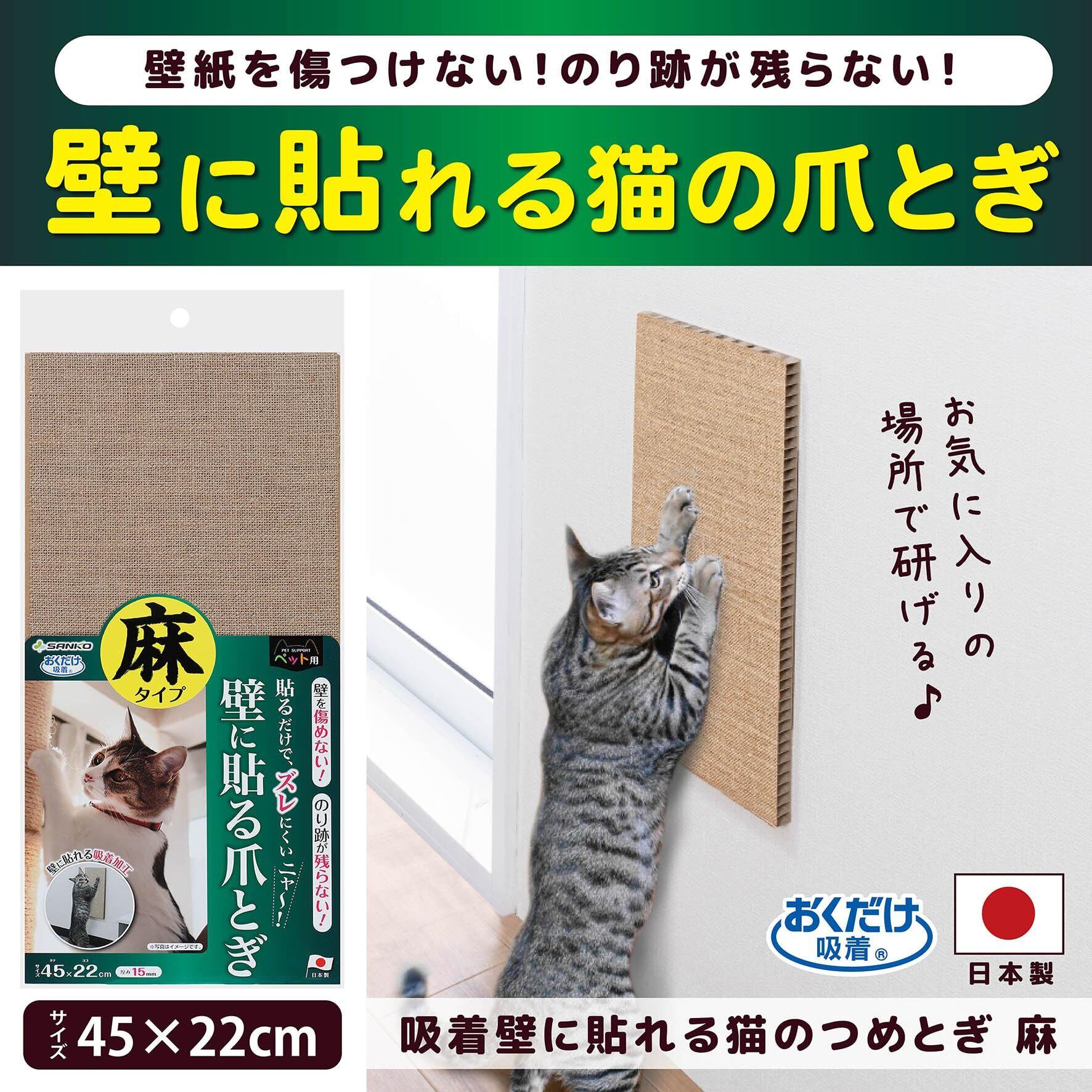 サンコー (SANKO) 吸着 壁に貼れる 猫のつめとぎ 麻 1枚 ネコ 剥がせる 壁紙 傷つけない 保護 ゴミが出にくい 掃除便利 45×22cm KV-88