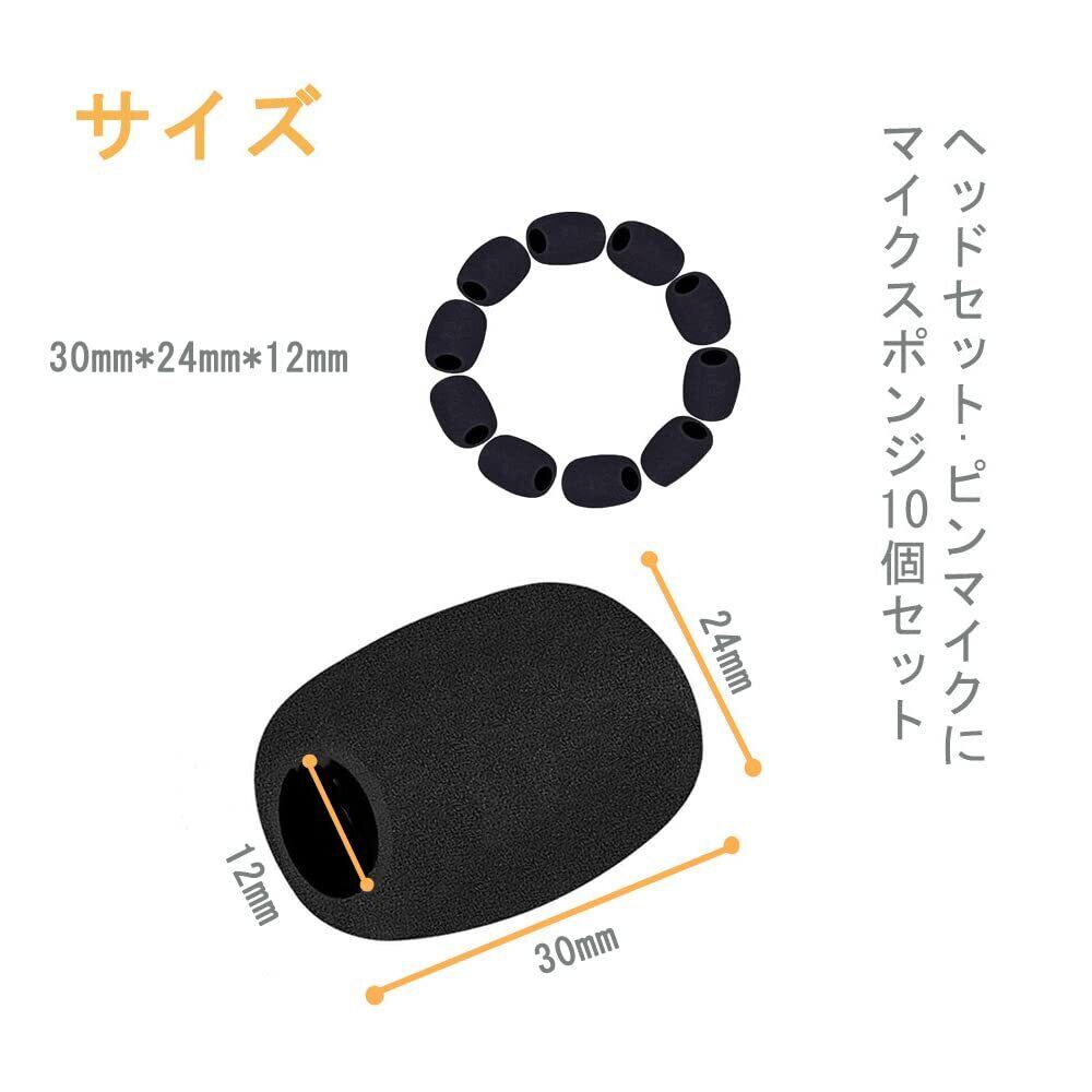 DFsuccesマイクスポンジ 10個セット ヘッドセット インカムマイク風防 拡声器 雑音防止 マイクカバー 交換用 黒 (30mm*24mm 内径12mm)