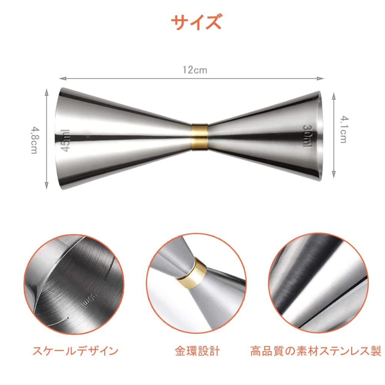 DFsucces ステンレス鋼製 ダブルヘッド ジガーカップ 目盛り付き カクテル調製用 オンス計量対応 バーテンディングツール 業務用(30ml/45ml)