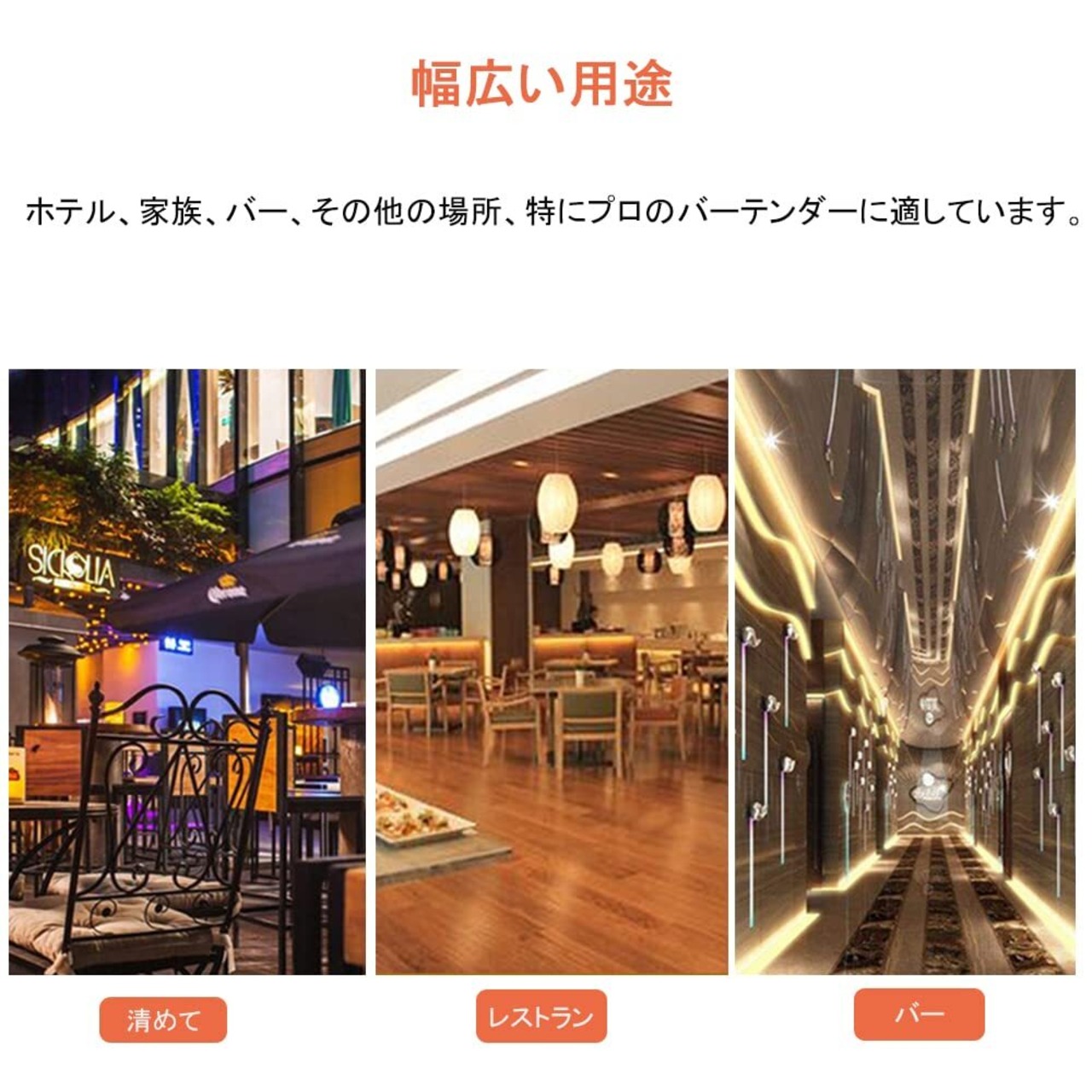 【適用範囲】:ホテル、家族、バー、その他の場所、特にプロのバーテンダーに適しています。