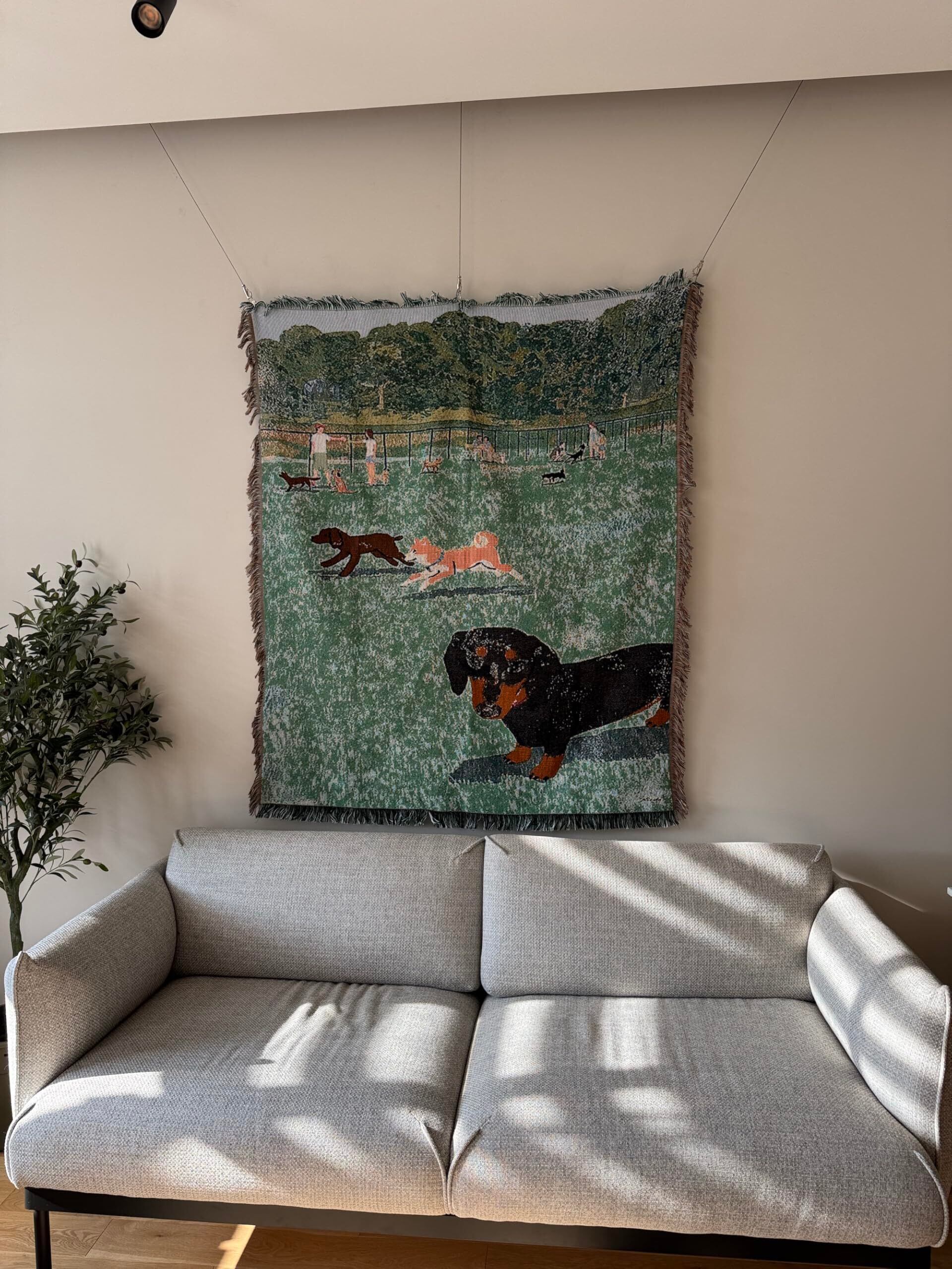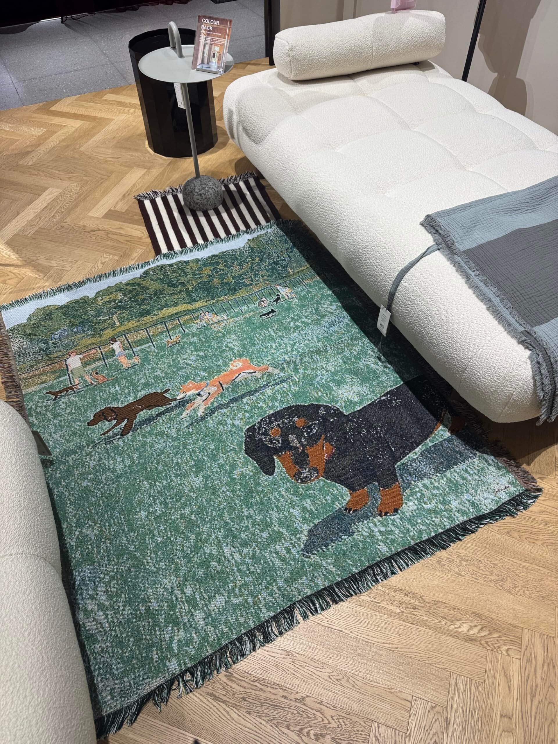 面白い柄,dog park,ダックスフント, グリーン,可愛い おしゃれ マルチカバー ブランケット ,ソファーカバー, ベッドカバー (130X160cm)