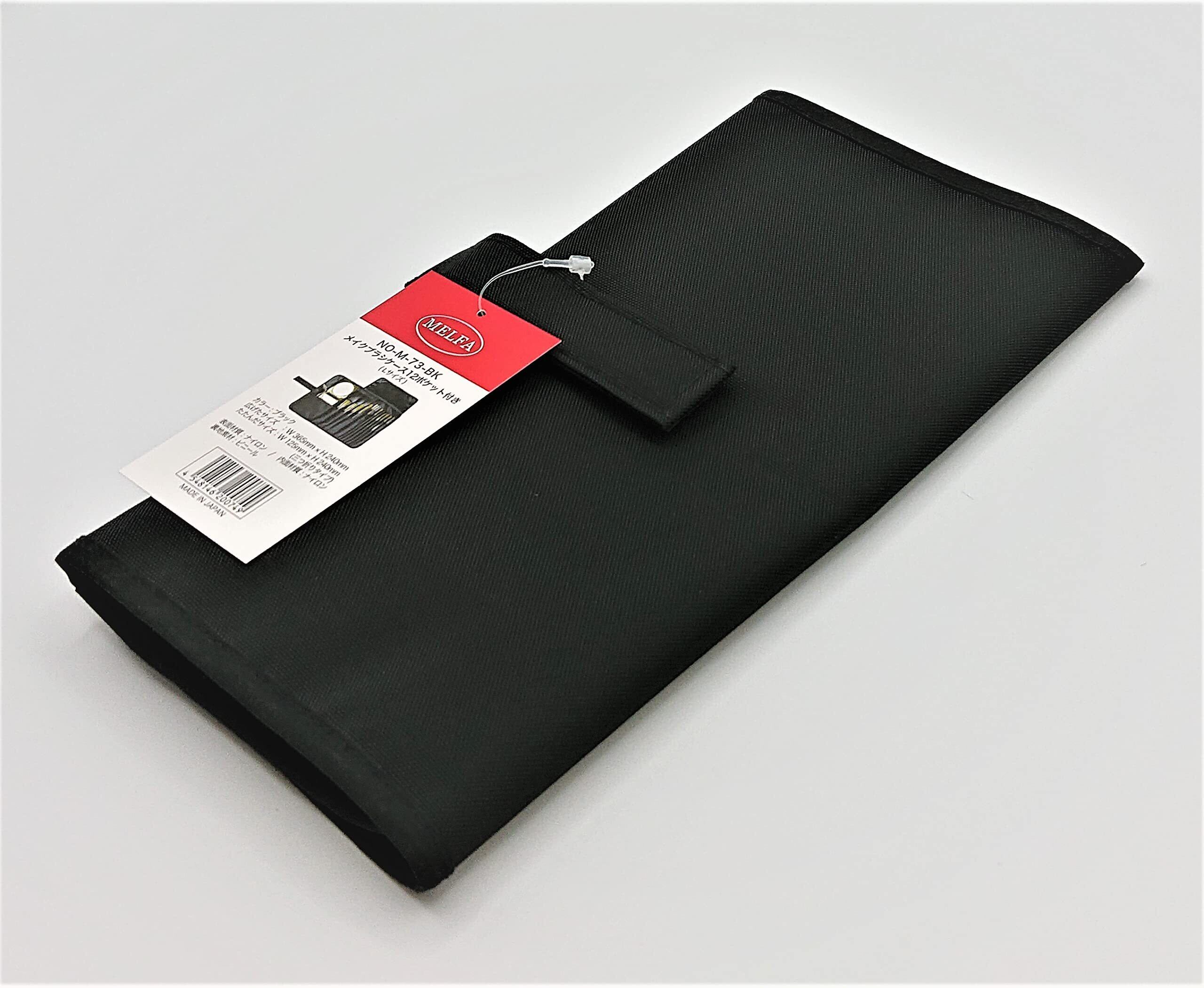 日本製 メイクブラシケース12ポケット付 Lサイズ ブラック