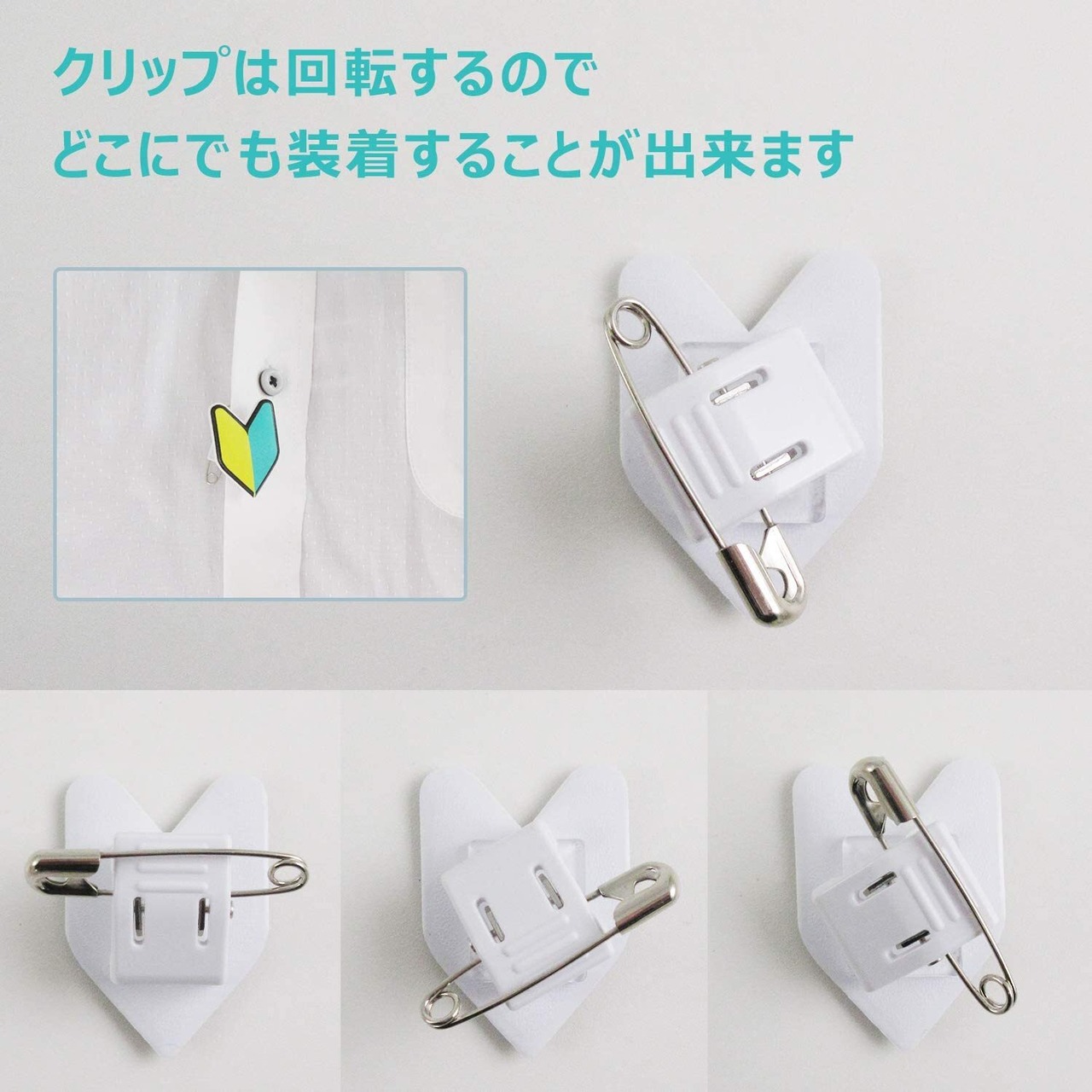 ホークアイ【4個入り/小】初心者マーク 若葉マーク バッジ 回転するクリップ 安全ピン付き|クリップ付き はさむ バッジ 研修 実習 新入社員