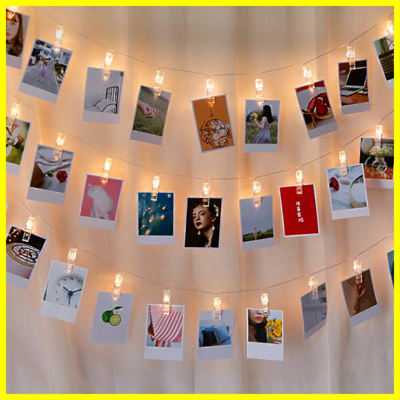 【製品仕様】クリップ間隔10 cm、合計20個、全長3 M、電源:AA電池*3(別売)。写真装飾灯は、オフィスや家に好きな写真を飾ってロマンチックな雰囲気を作ることができます。