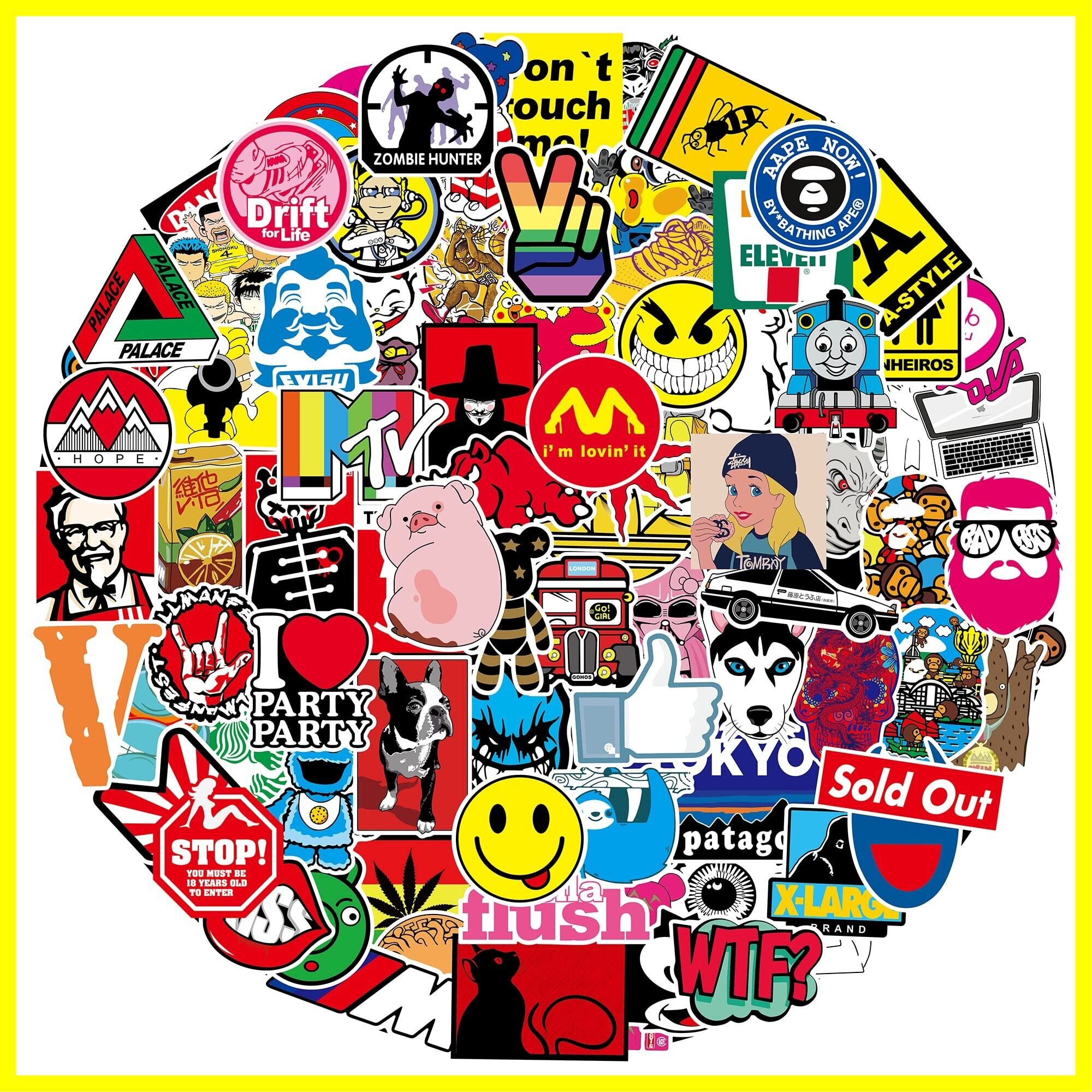 ステッカーセット 100枚 防水ステッカー シールパック ブランドステッカースーツケース 車 バイク ヘルメット スケボー ギターなどに適用 (100A)