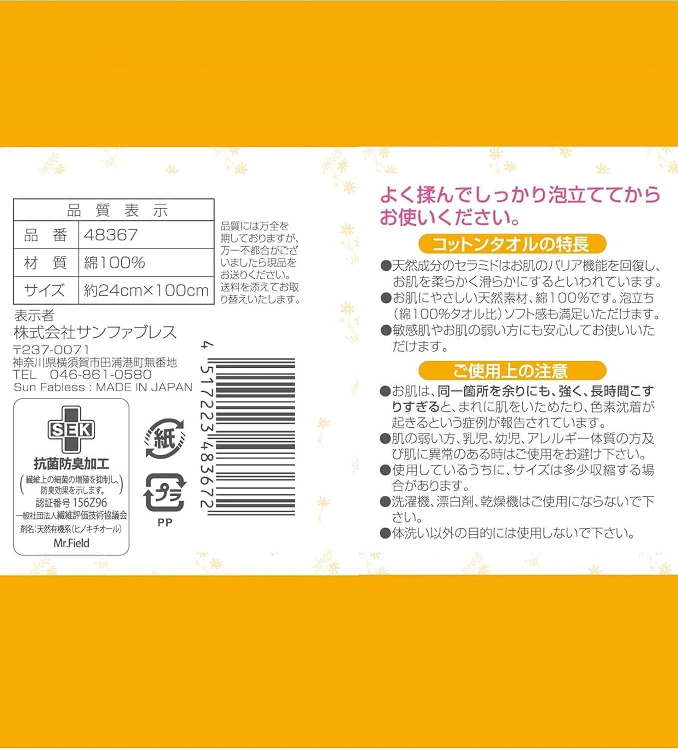 サンファブレス 泡立つ純綿タオル
