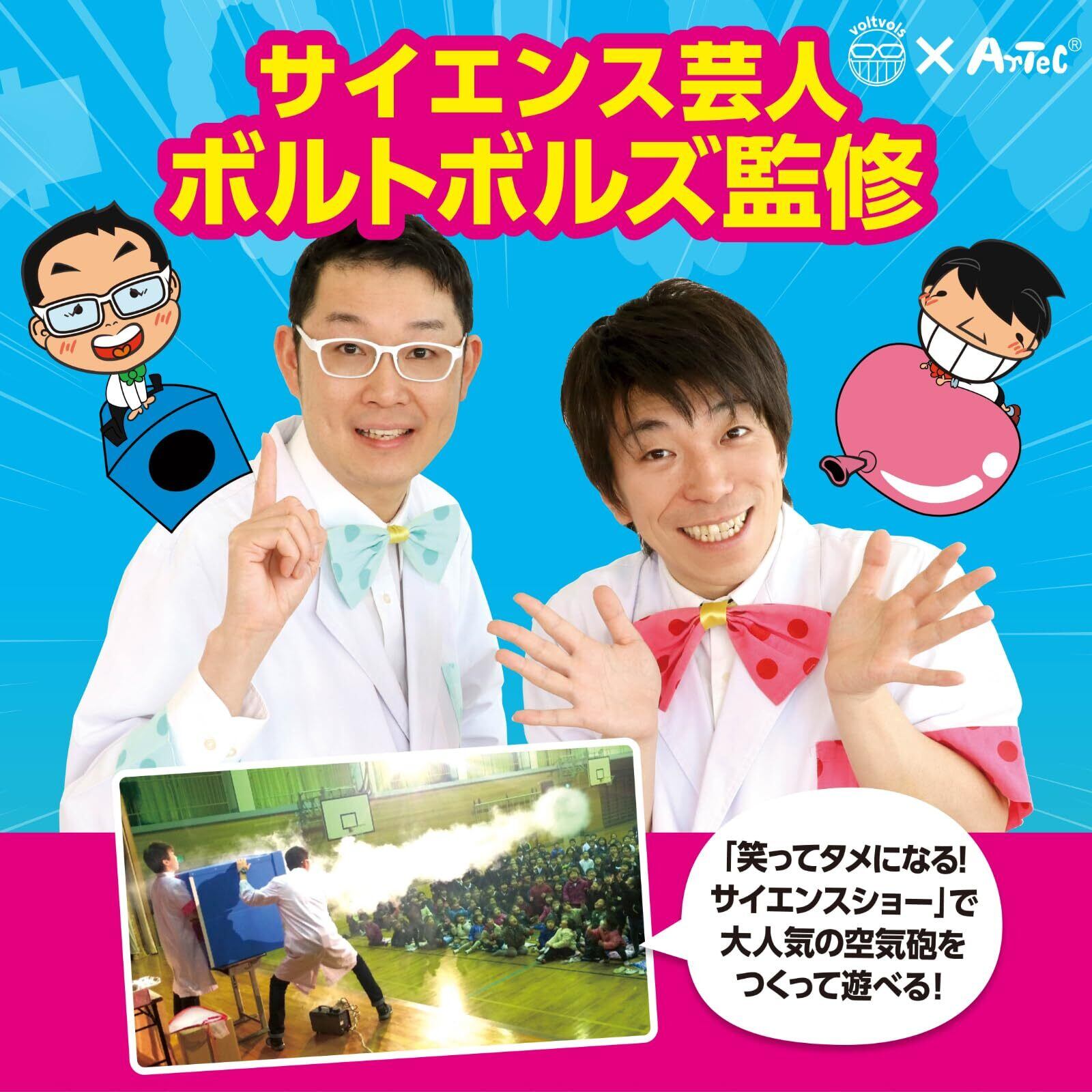 空気の力で的を射抜け!サイエンス芸人 ボルトボルズ監修!「笑ってタメになる!サイエンスショー」で大人気の空気砲を作って遊べるサイエンスクラフト。この商品の動画をボルトボルズのYouTubeチャンネルで見ることができます