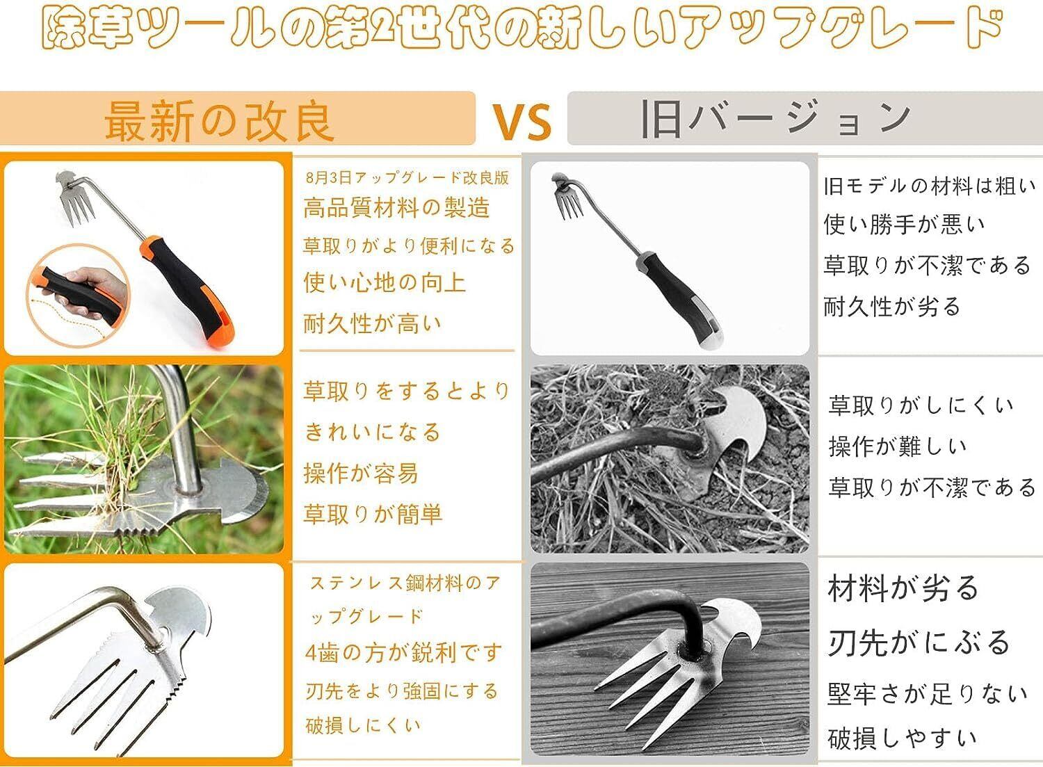 【ポータブルで軽量】庭の除草ツール、小型、保管が簡単、軽量設計なので持ち運びが簡単です。第二世代の草取り道具、ステンレス鋼、耐久性が向上。