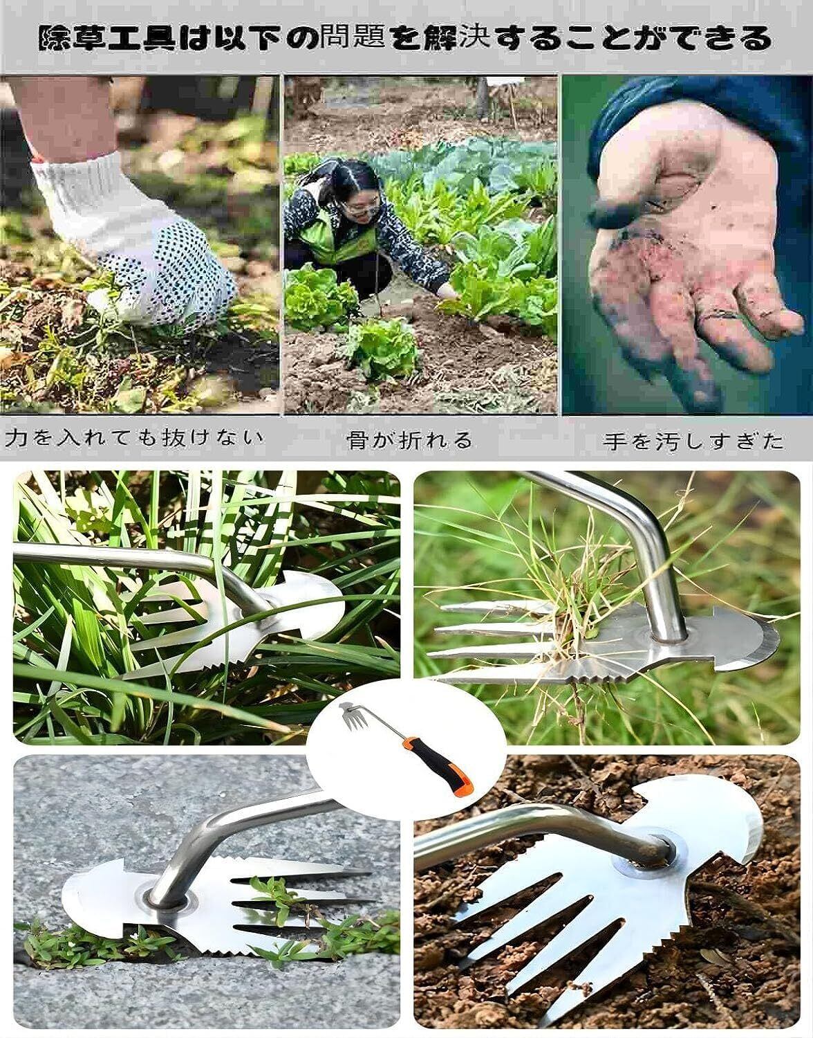 【雑草除去】ステンレス製の隙間除草ツールは鋭い爪を備えており、屋外の庭や芝生から雑草を簡単に取り除き、労力を節約します。