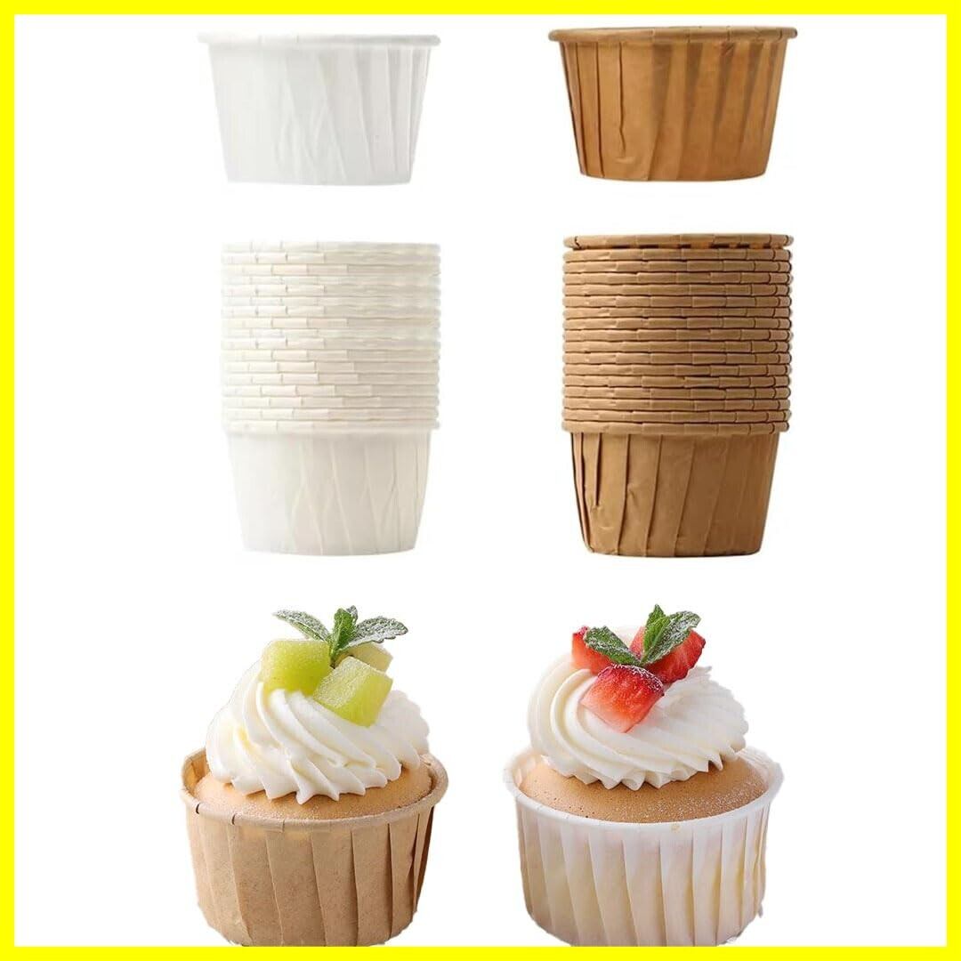 【セット内容・素材】ケーキベイクカップ100個入り(白+茶色)、純木材パルプ紙から作られ、高温に強く、変形しにくい。